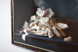 На картине «Ваша жизнь, сэр» изображена пирамида чеков. Это отсылка к голландским vanitas (жанр живописи эпохи барокко, аллегорический натюрморт, центром которой являются атрибуты смерти и бренности человеческой жизни): помни о смерти, жизнь скоротечна. Только вместо черепа – кассовая лента.