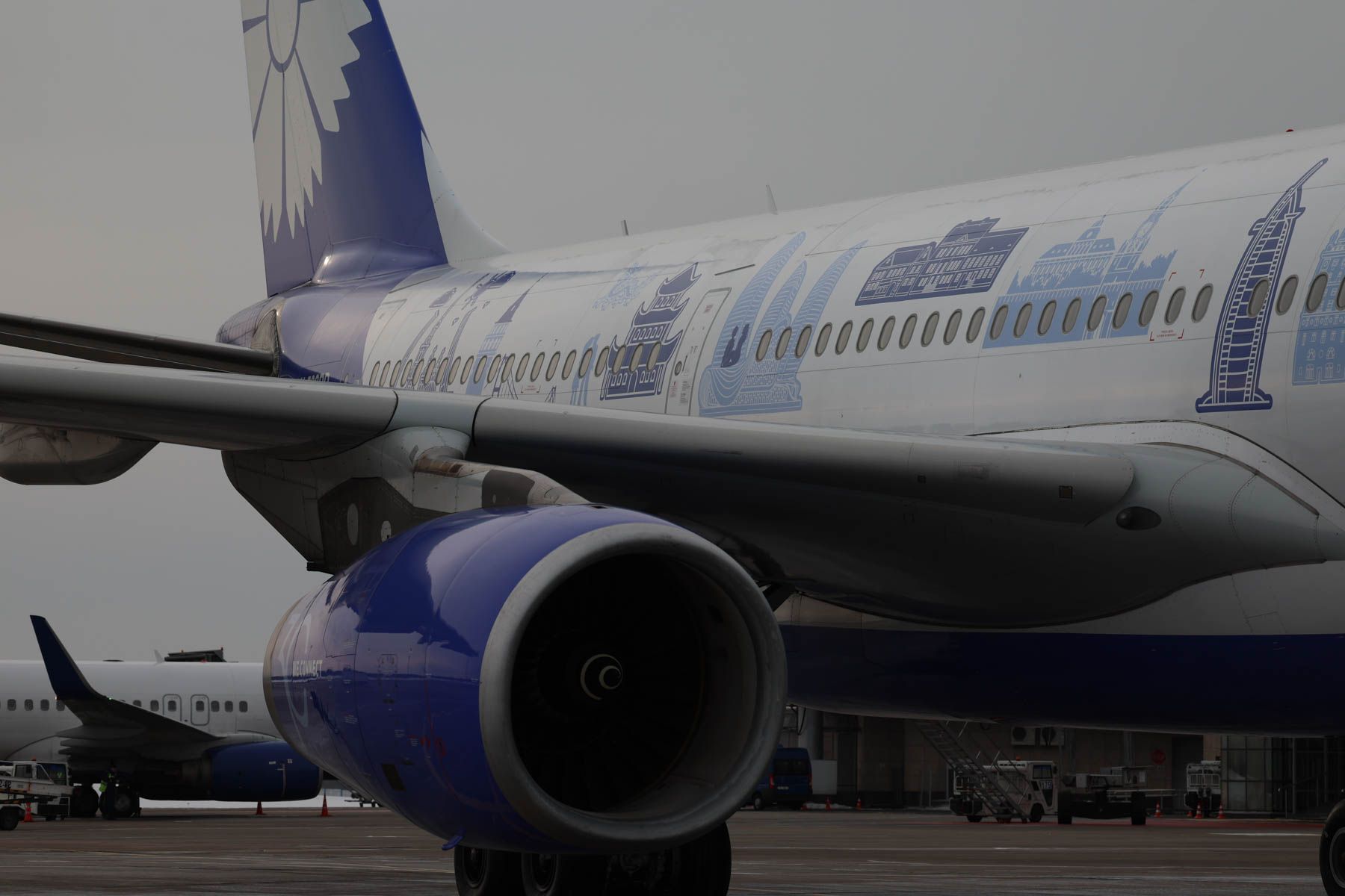 Смысловым ядром дизайна стал слоган авиакомпании «Мы соединяем», размещенный на двигателях самолета.