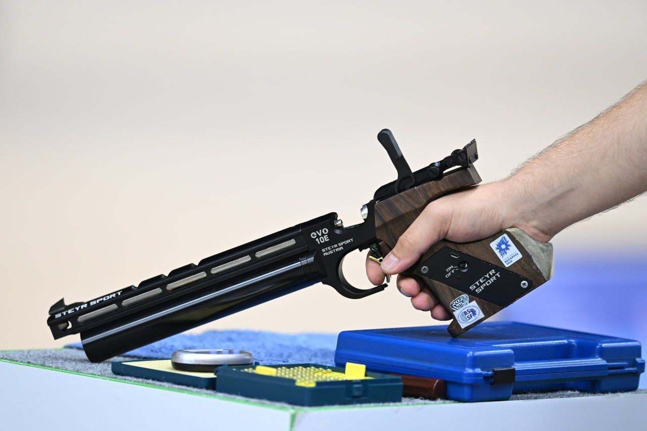 В стрельбе из пневматического пистолета на дистанции 10 м в миксте дуэт показал результат 467,6 балла, что позволило им подняться на вторую ступеньку пьедестала.