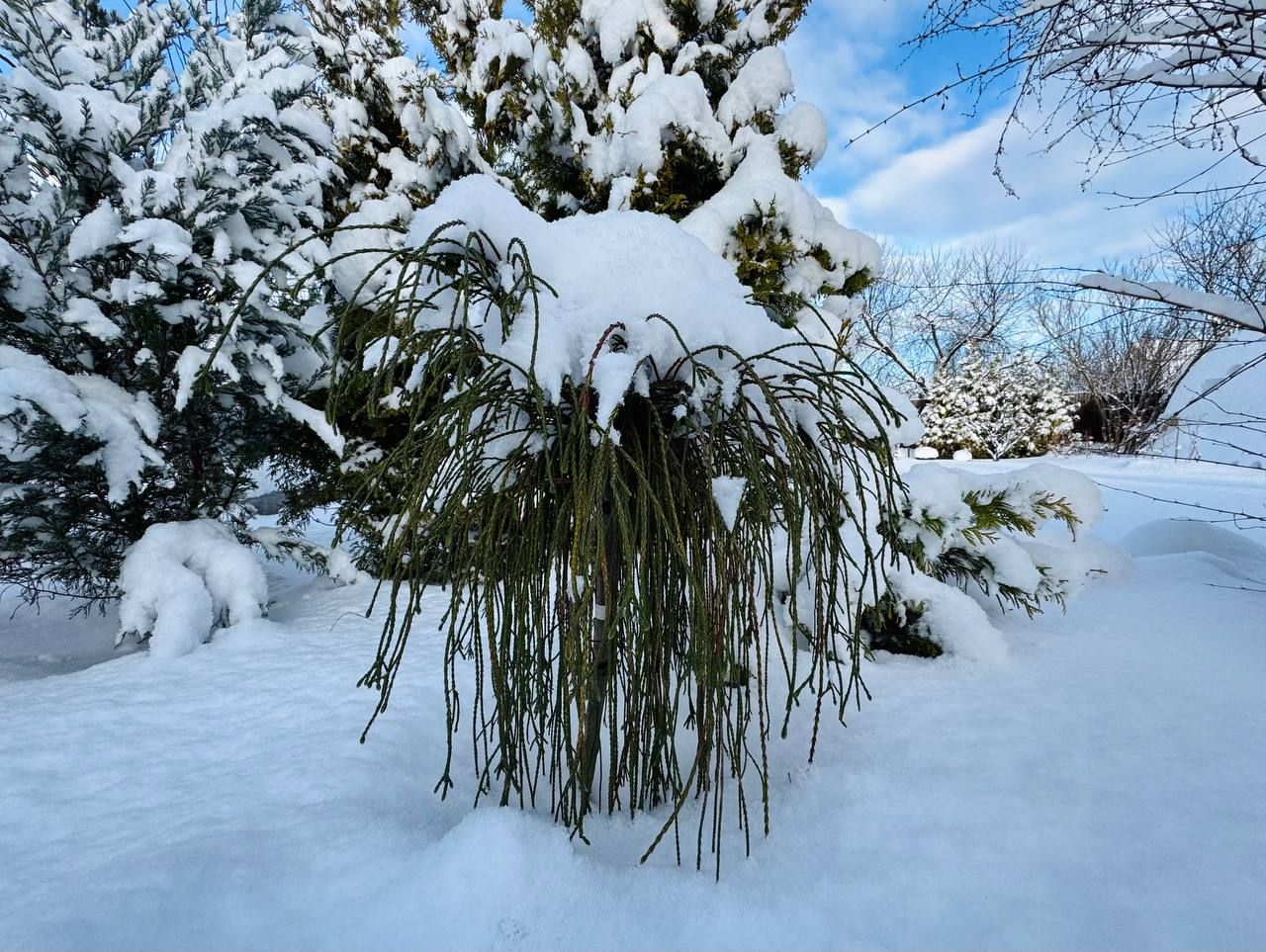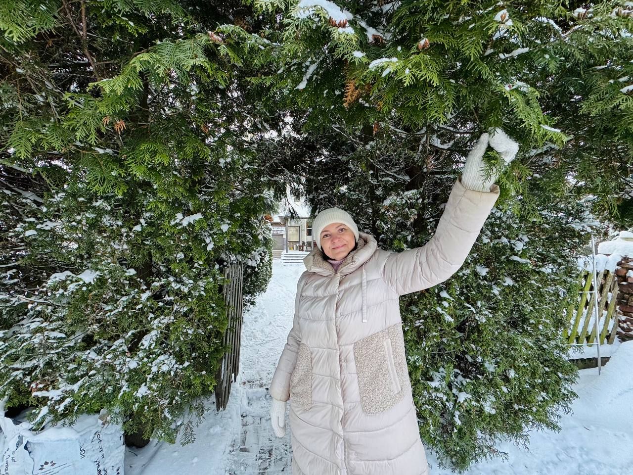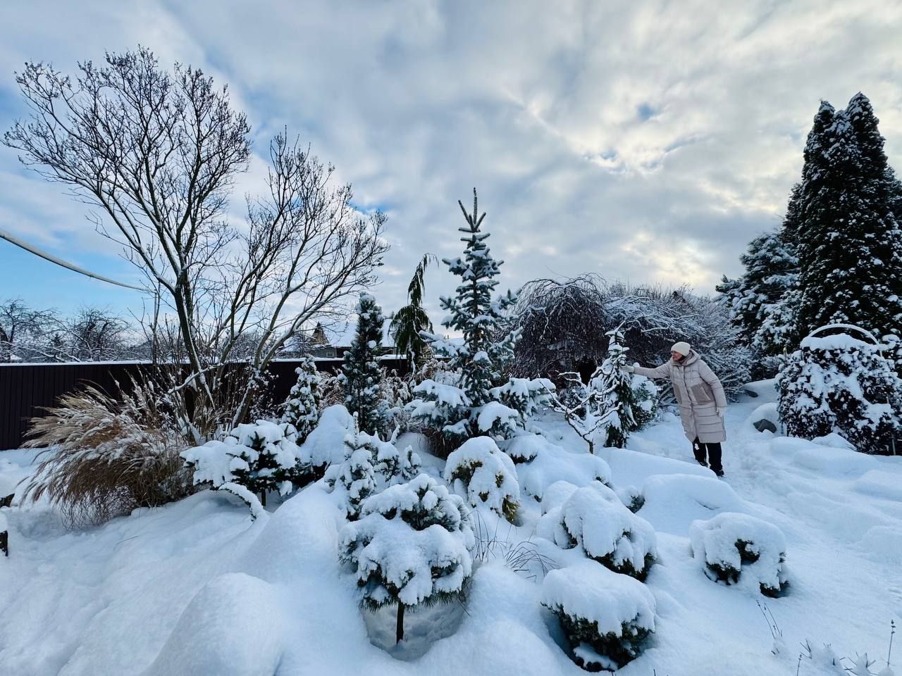 С домом участок Новиковых занимает 17 соток, десять из них отведено под вечнозеленый сад. Елена открывает калитку, и мы ныряем в зимнюю сказку: снег укрыл каждое дерево и кустик, но от этого вид еще более чарующий.