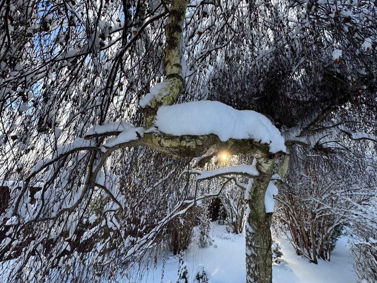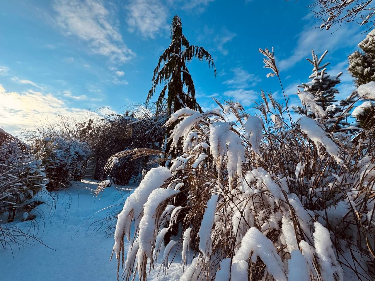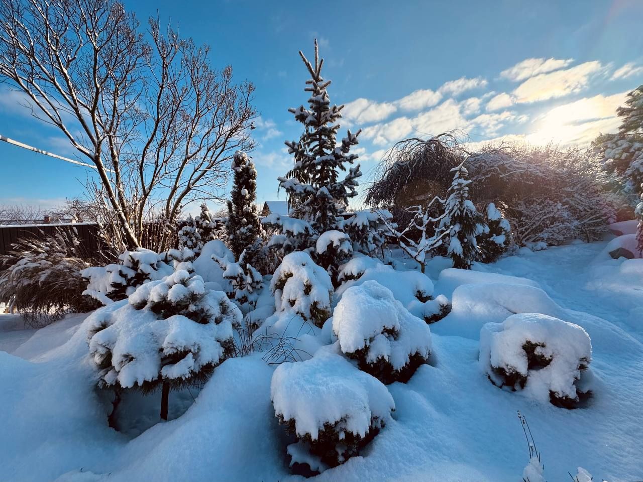 С домом участок Новиковых занимает 17 соток, десять из них отведено под вечнозеленый сад. Елена открывает калитку, и мы ныряем в зимнюю сказку: снег укрыл каждое дерево и кустик, но от этого вид еще более чарующий.