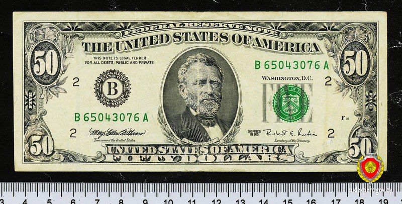 «В денежный билет внесены изменения путем наклеивания в отдельных местах фрагментов бумаги с изображениями чисел, текста и лица мужского пола, соответствующим номиналу 50 долларов, выполненными способом электрофотографической печати», – пояснили в пресс-службе ведомства.