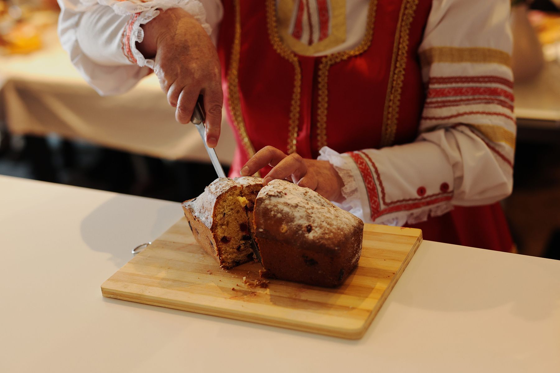 Северяне пригласили к сборному столу. Тут и щука из озер Ельни, и хлебная бабка – эдакий местный бисквит, который готовится из черствого хлеба, с опциональным добавлением творога или яблок. И клюква во всех вариациях – от морса до соуса к мясу. Но главное блюдо и точка на маршруте – хлеб по двухсотлетнему рецепту. Аутентичная выпечка внесена в список историко-культурного наследия Беларуси.