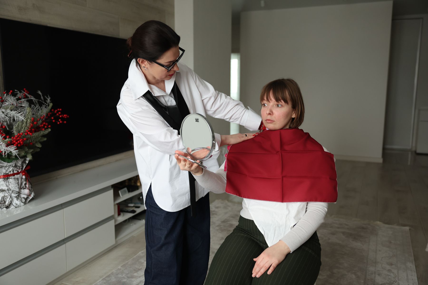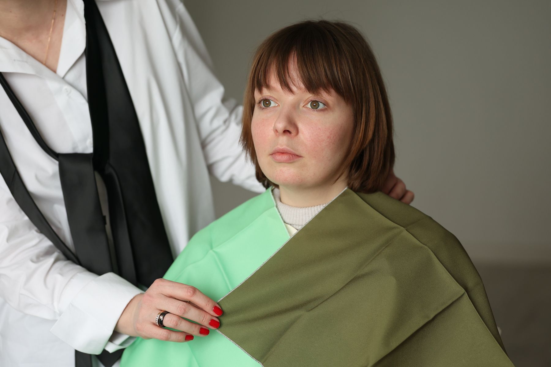 «Вот видите, яркие цвета перебивают вашу красоту. Когда так происходит, окружающие видят не девушку, а только цвет ее одежды, – меняет платочки Ольга. – А вот глубокий зеленый с теплым подтоном сразу делает ваши глаза и волосы яркими».