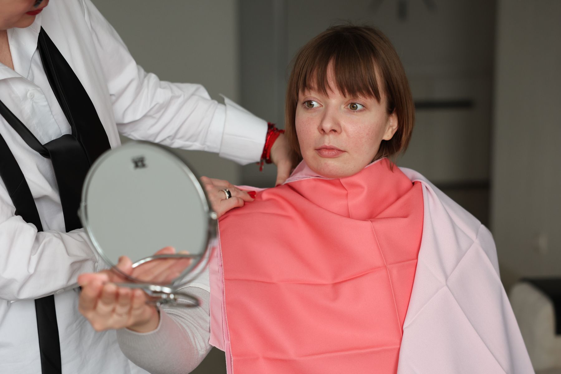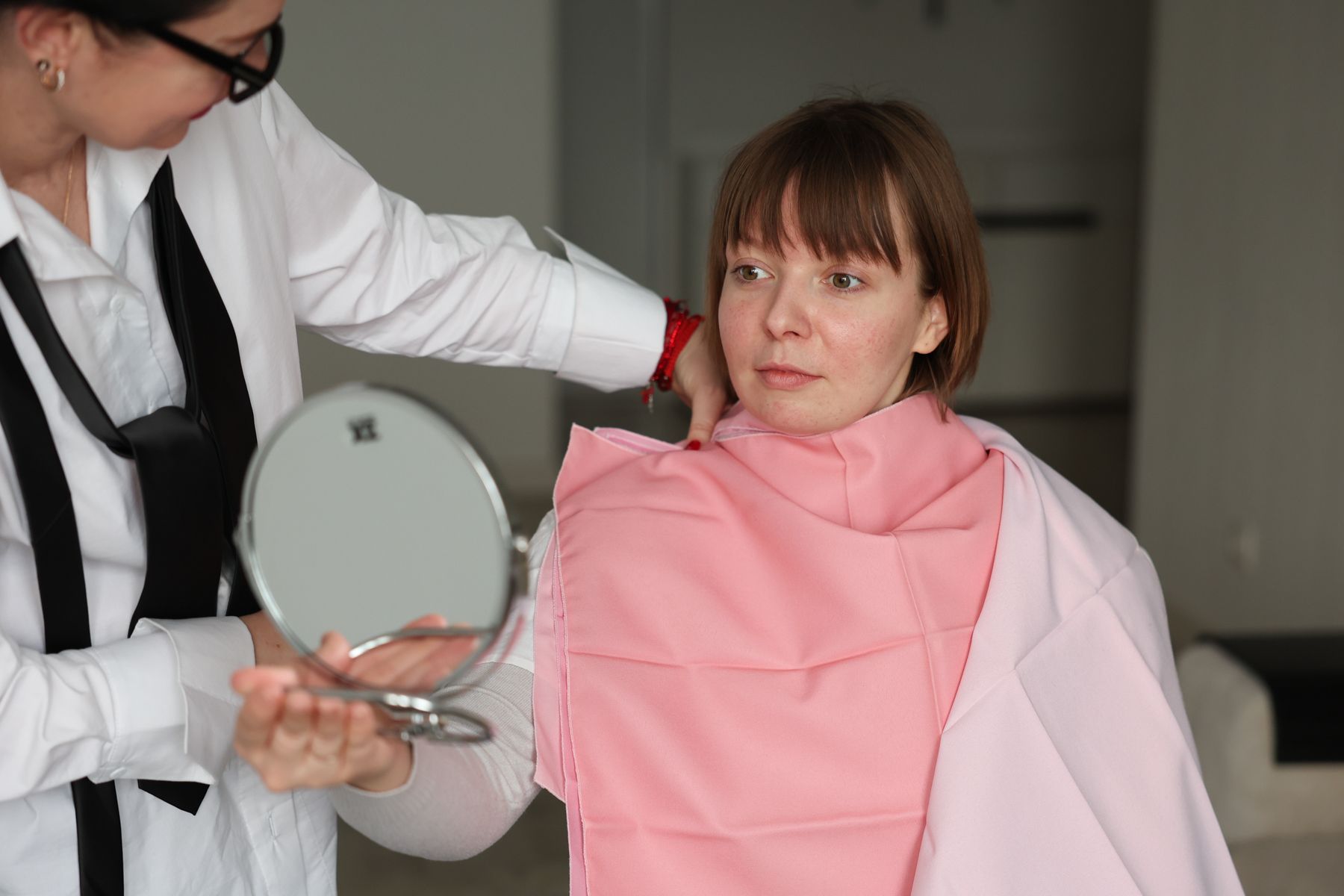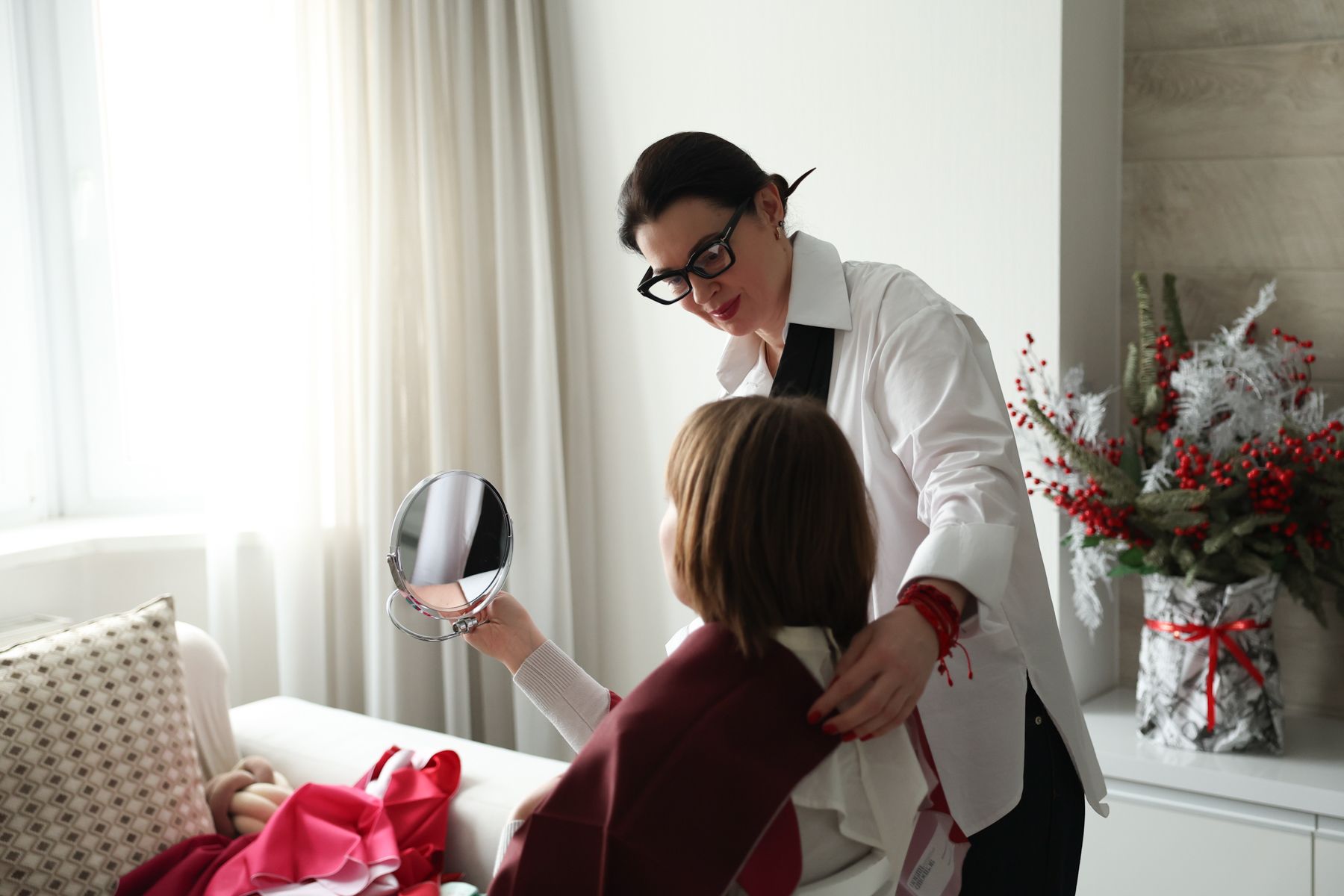 «Чтобы исключить влияние других оттенков извне, надеваем белый фартук и располагаемся напротив окна. Только естественный свет дает точный результат, – поясняет Ольга. – Некоторые мои коллеги используют также повязку, которая убирает волосы от лица. Я считаю, что это лишнее. Девушка же будет носить тот или иной оттенок с прической, что несомненно повлияет на целостность образа».