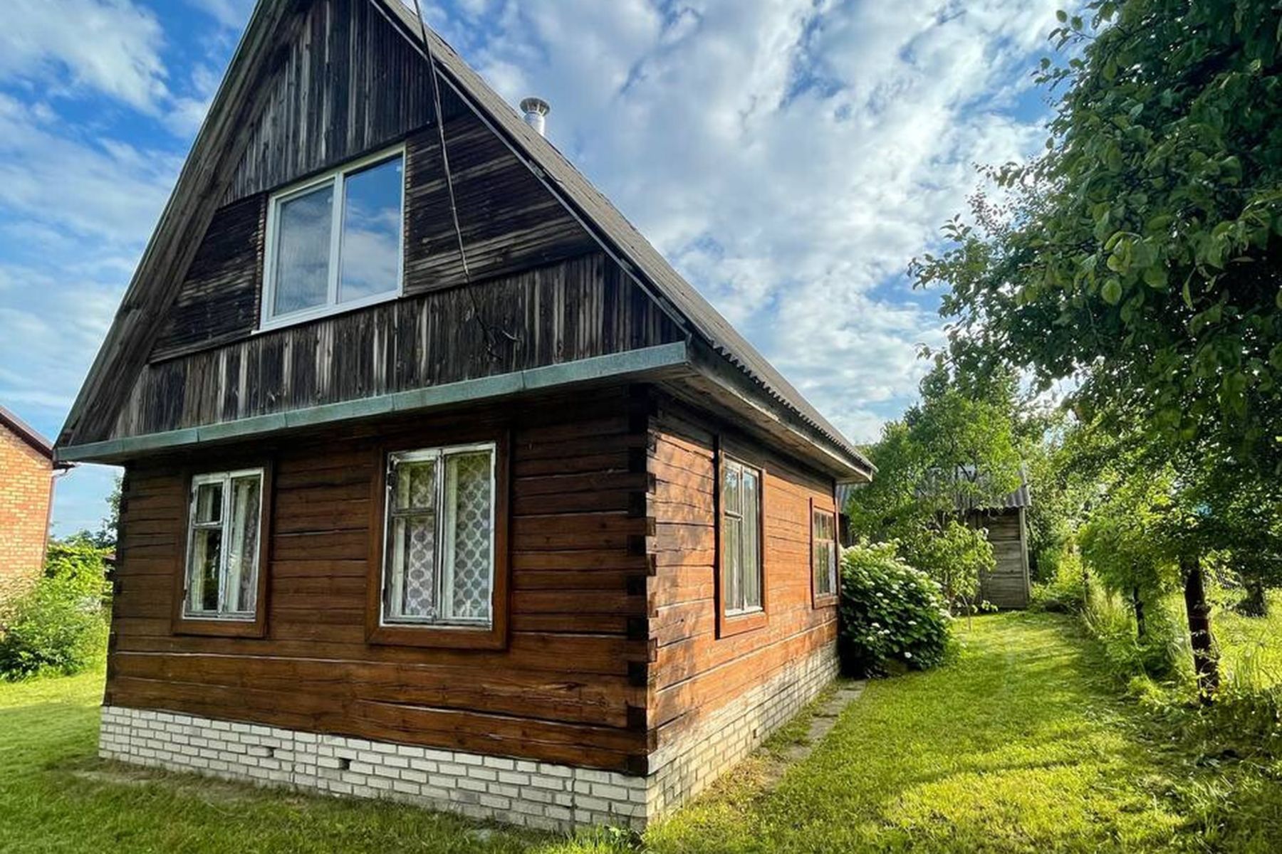 Из удобств – печное отопление и сезонная вода: на зиму систему придется консервировать, чтобы трубы не лопнули. В комплект прилагается летняя кухня и компактный участок земли с ухоженным газоном.