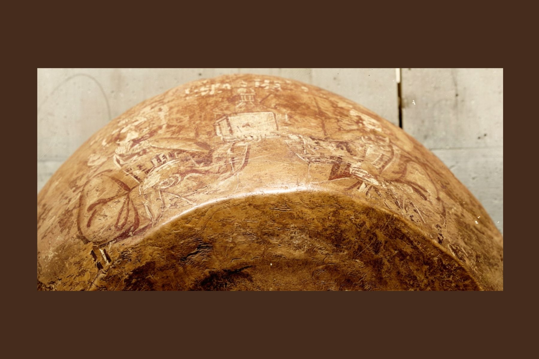«Исходя из формы ковша, можно предполагать, что он был изготовлен в период с XV по XVII век. При этом он был расписан первой монохромной росписью в виде двенадцати изображений, которые сочетают фигуры людей, животных, птиц, орнаментальных узоров», – сказал Дмитрий Скворчевский.
