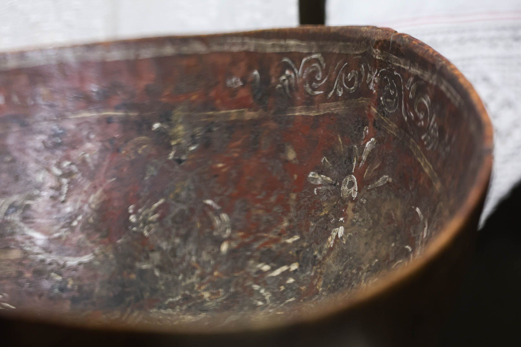 Предположительно в XV веке ковш использовался для праздничных пиров какого-то сообщества, хранившего языческие традиции в той или иной степени. Именно с этим и связана оригинальная роспись.