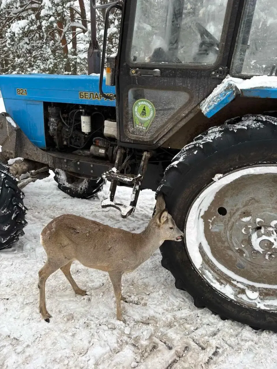 Фотофакт: белорусские лесничие прокатили косулю на тракторе – спасали животное