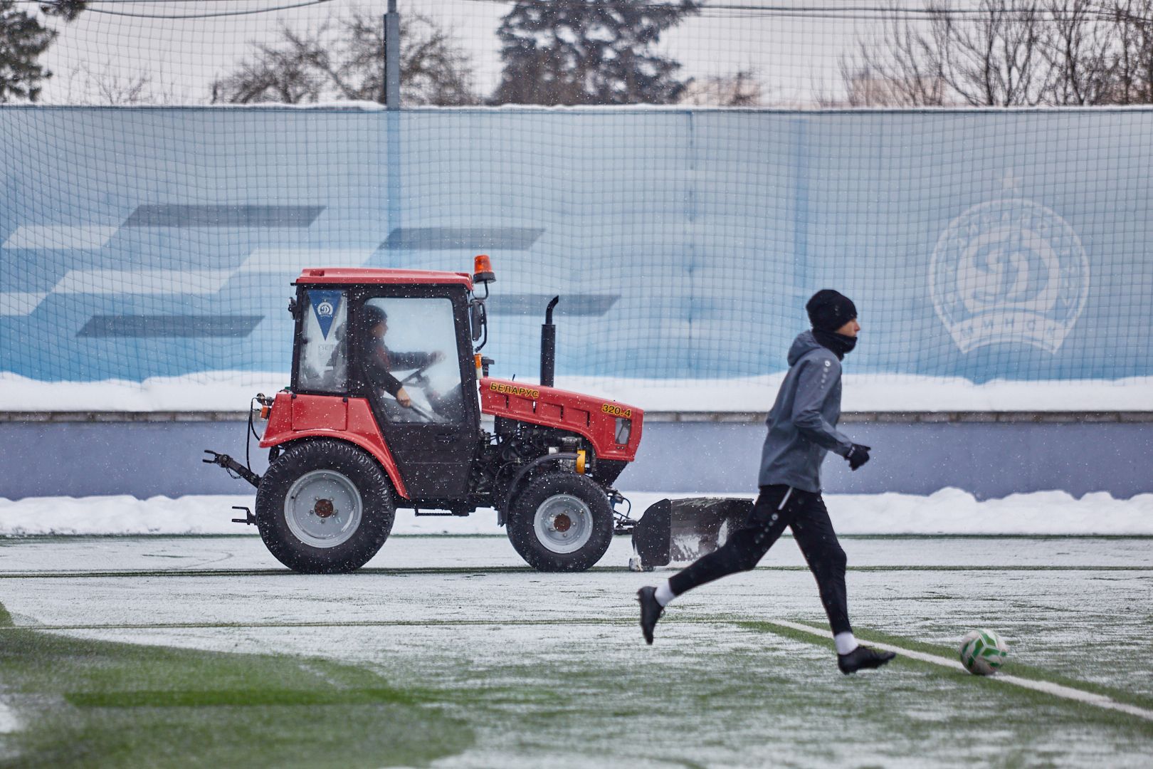 До игры и в перерыве поле чистил трактор. © Святослав Зоркий, Times.by