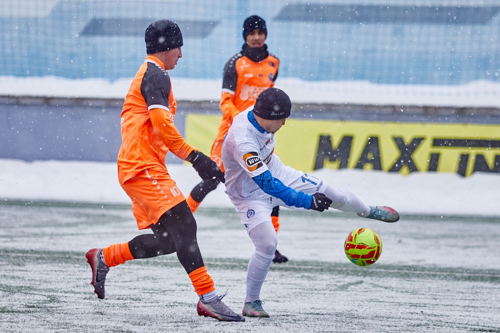 – Конечно, условия не футбольные, – говорит Максим. – Но ничего не поделаешь. Приспосабливаемся. Надели все что есть: подштанники, перчатки, шапки.