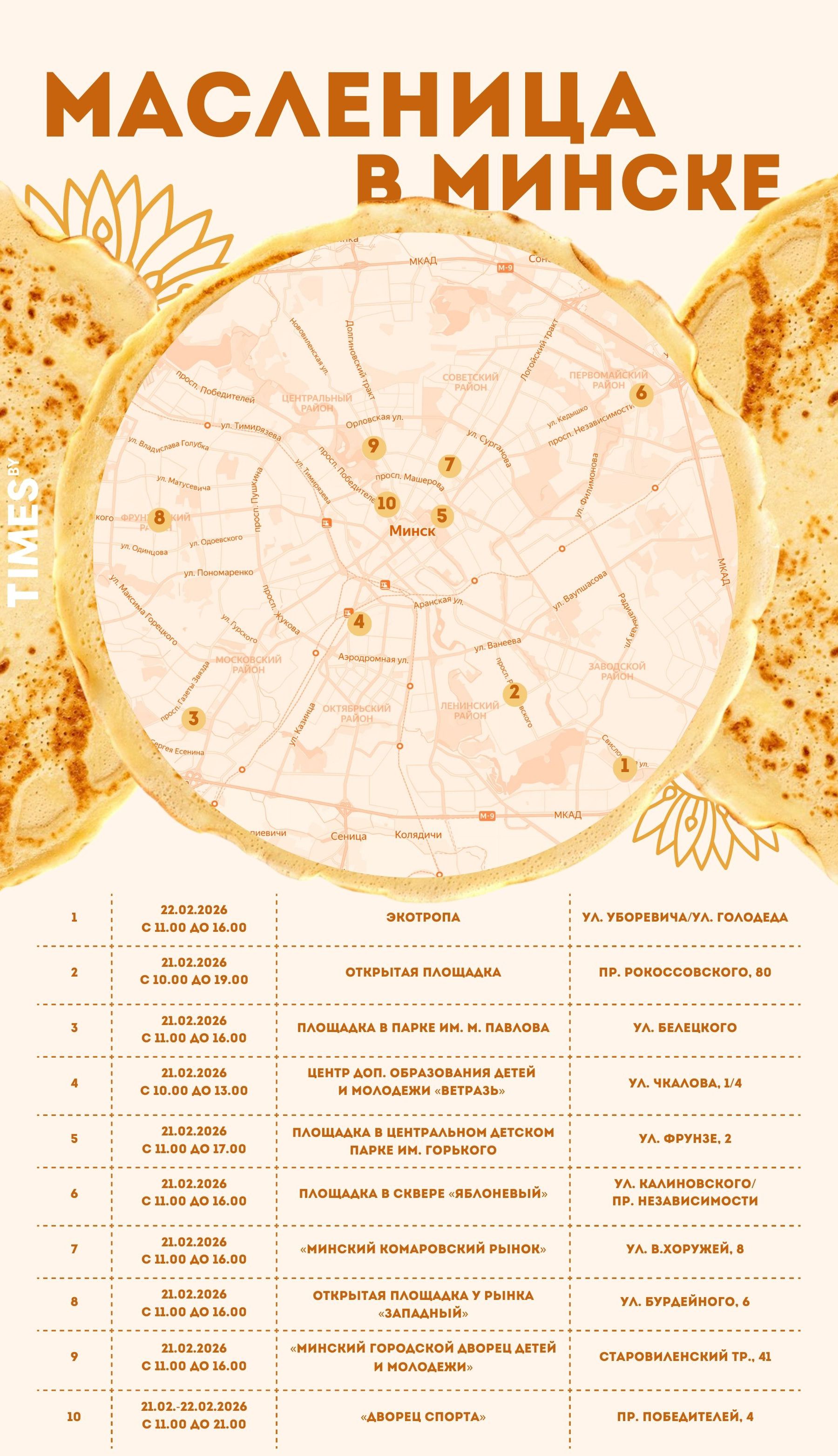 Минский горисполком определил в каждом районе города площадку, где будут организованы народные масленичные гуляния и ярмарки. Центральными локациями станут площадки в парке Горького, у Дворца спорта и у Комаровского рынка.