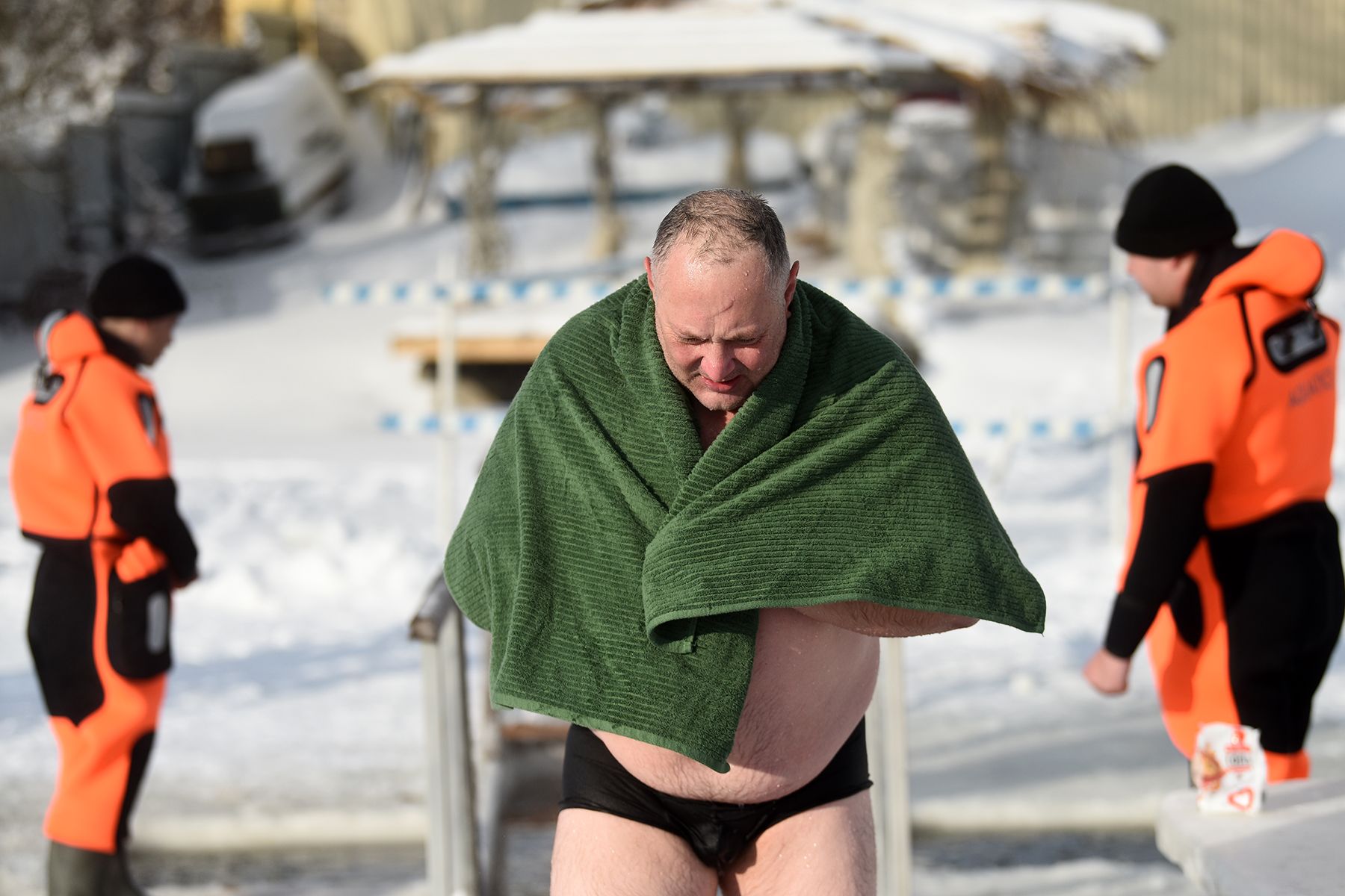 Юрий Скоробогатый, 42-летний рабочий бумажной фабрики, с утра сходил в церковь, набрал крещенской воды. Минус 16 на улице его не пугает.