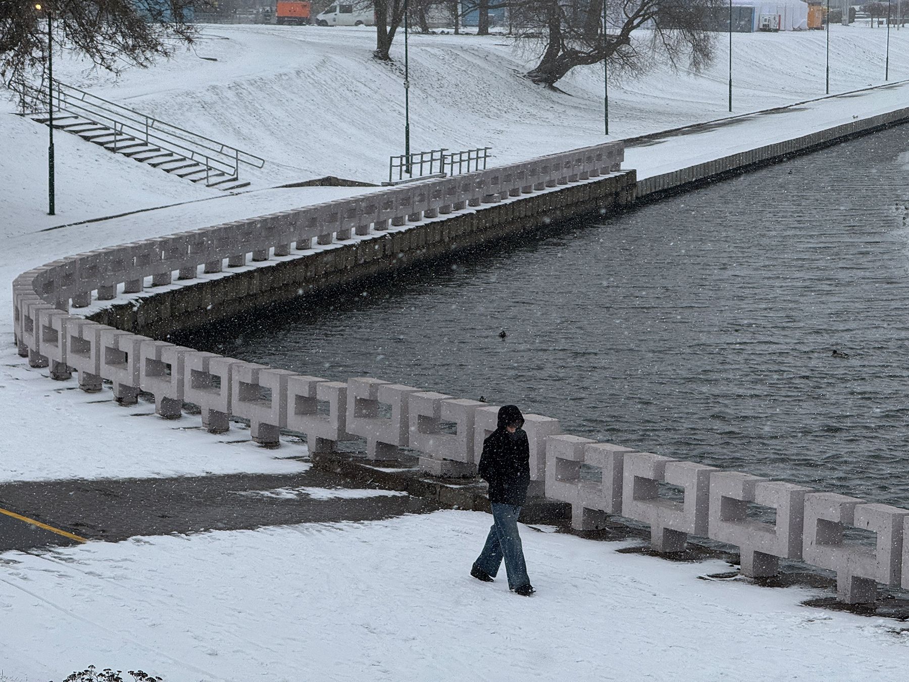 Сильный порывистый ветер почти сбивает с ног, но мы все равно рады: очень хочется, чтобы снежный покров сохранился до Нового года, ведь, как и мандарины, это один из непременных атрибутов праздника.