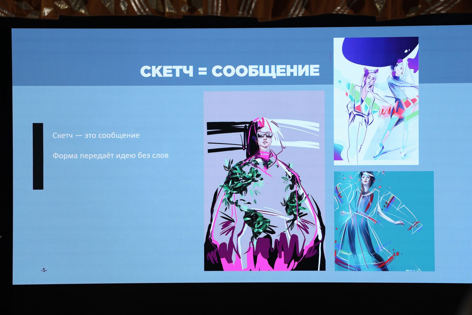 Зачем уметь рисовать на планшете и канут ли бумажные эскизы в лету – об этом вместе с аудиторией рассуждал на сцене дизайнер, fashion-иллюстратор и многократный победитель Республиканского фестиваля-конкурса моды и фото «Мельница моды» Сергей Драчев.