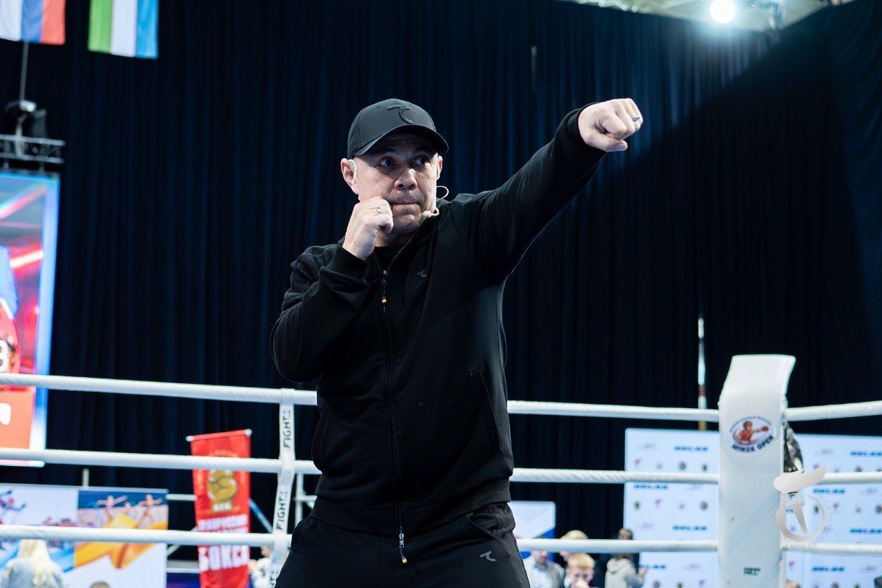 Легендарный спортсмен в ринге показал юным атлетам боксерские комбинации и элементы боя.