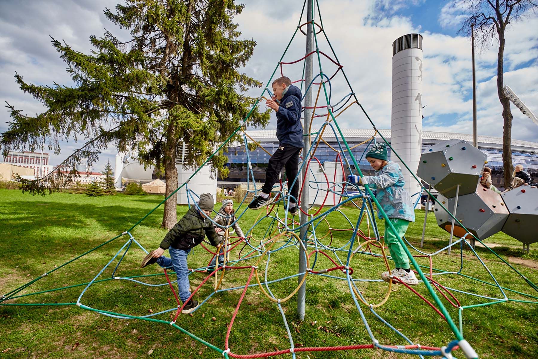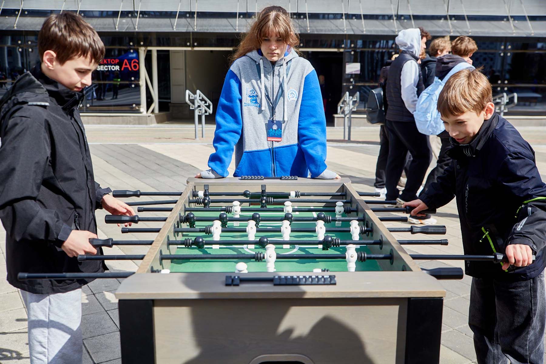 На футбол Виталий пришел с семьей. Дети в перерыве резвятся на игровых площадках. Развлечений хватает.