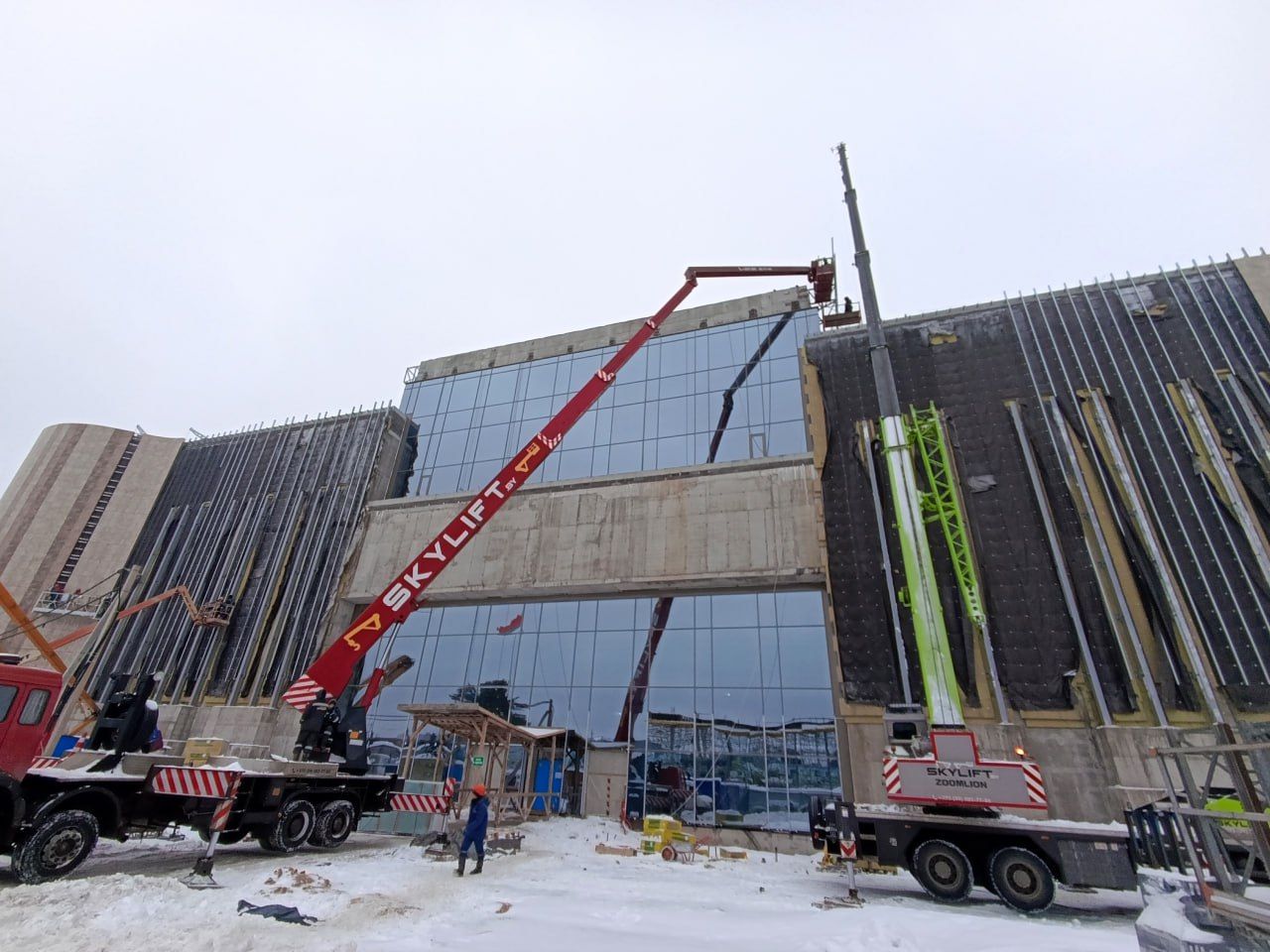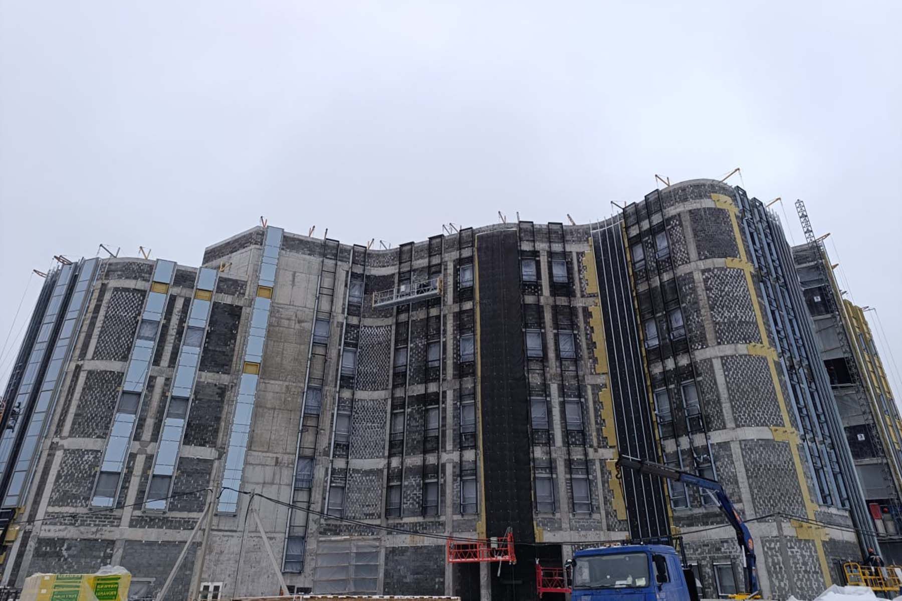По словам главы дирекции по строительству объекта Максима Котова, строительные работы «перешли экватор» и здание готово наполовину. Уже введено пять этажей, в основном закончен каркас. Строители занимаются отделочными работами и кладут плитку.