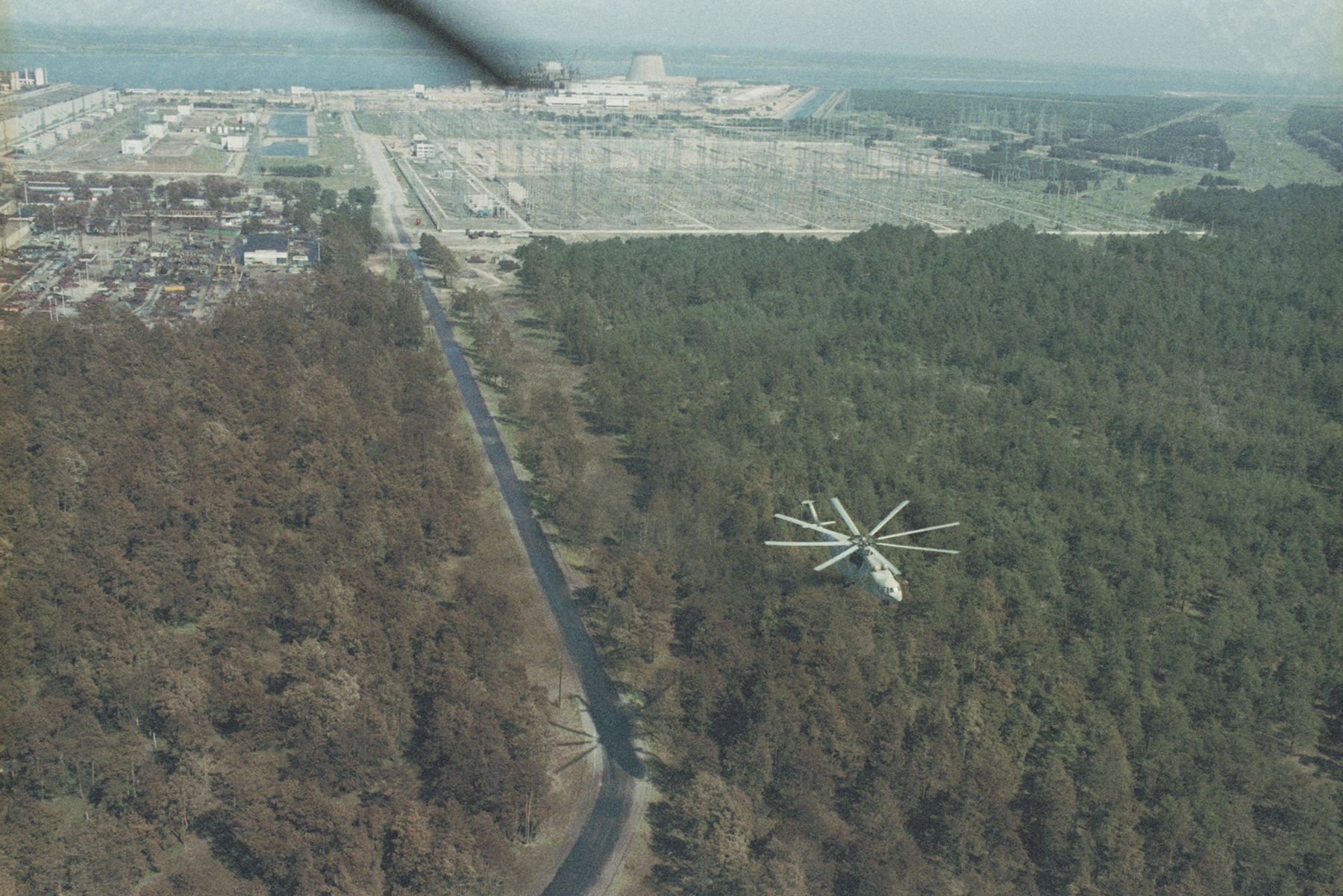 Вертолет Ми-26 во время дезактивации местности в тридцатикилометровой зоне отчуждения у Чернобыльской атомной электростанции после аварии. Фото: Валерий Зуфаров, ТАСС