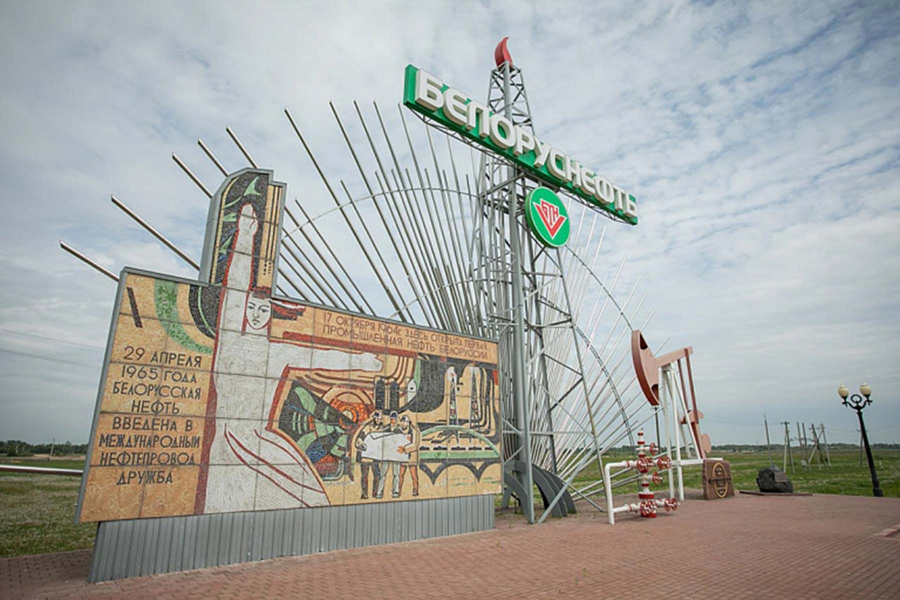 Памятная стела с мозаичным панно, на котором изображены первые белорусские нефтяники, расположена на 65-м километре трассы Гомель – Калинковичи. Обелиск символизирует начало новой отрасли в экономике страны – нефтедобывающей.