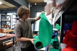 В глаза бросается стеллаж с обширной яркой палитрой фабричных тканей – именно такие материалы используют ведущие производители Европы, Азии и Америки. Цена качества баснословная: некоторые лекала, по словам Сергея, стоят 500 евро за квадратный метр.