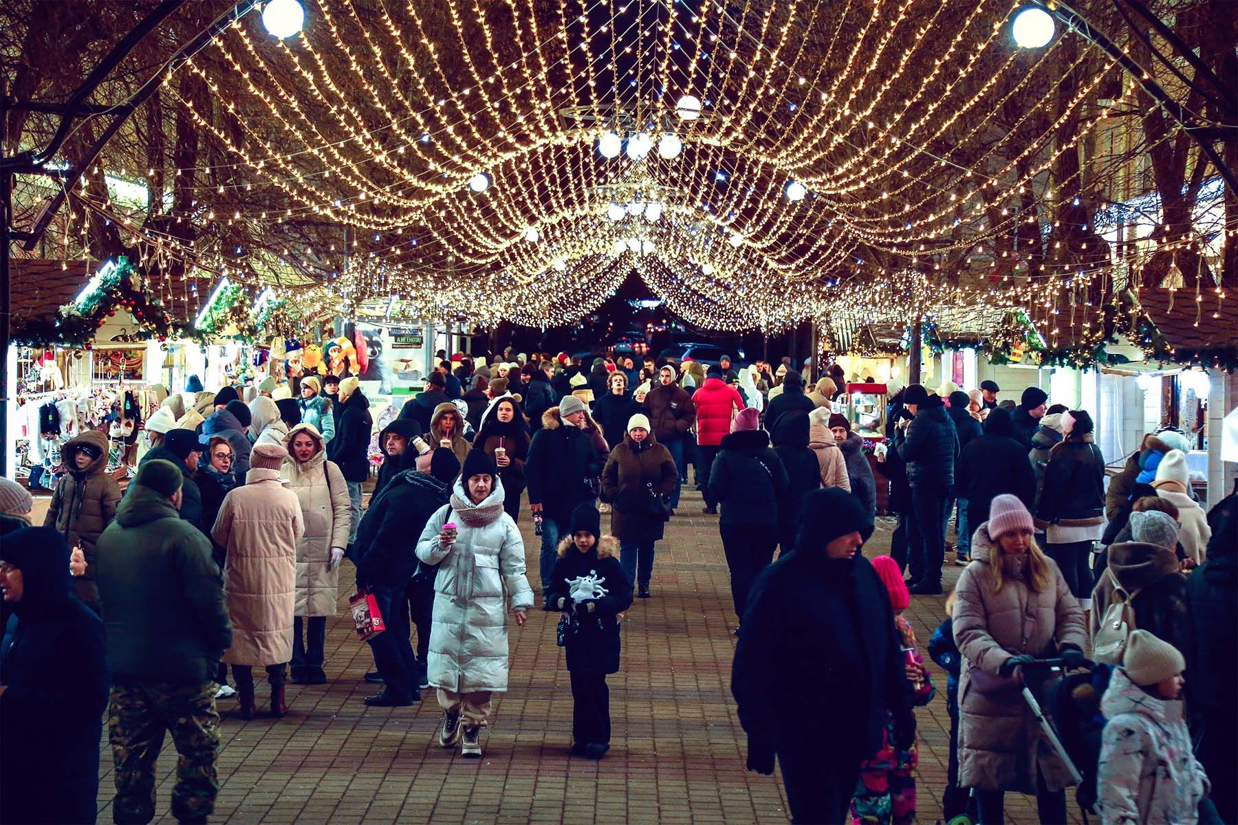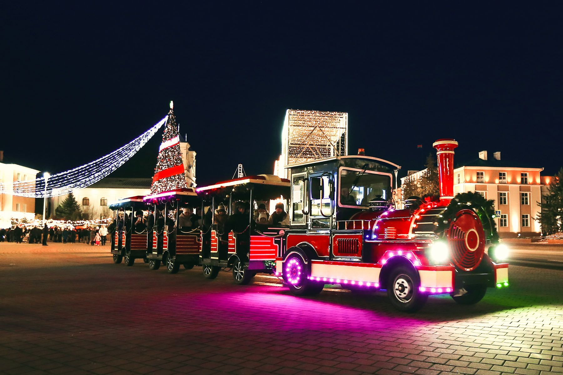 Тут же, на площади, сияют новогодний поезд и карусель, светятся фонтаны, мельницы и огромные шары. У ЦУМа переливается огнями елка и большие инсталляции – привычный городской пейзаж буквально преобразился на глазах.