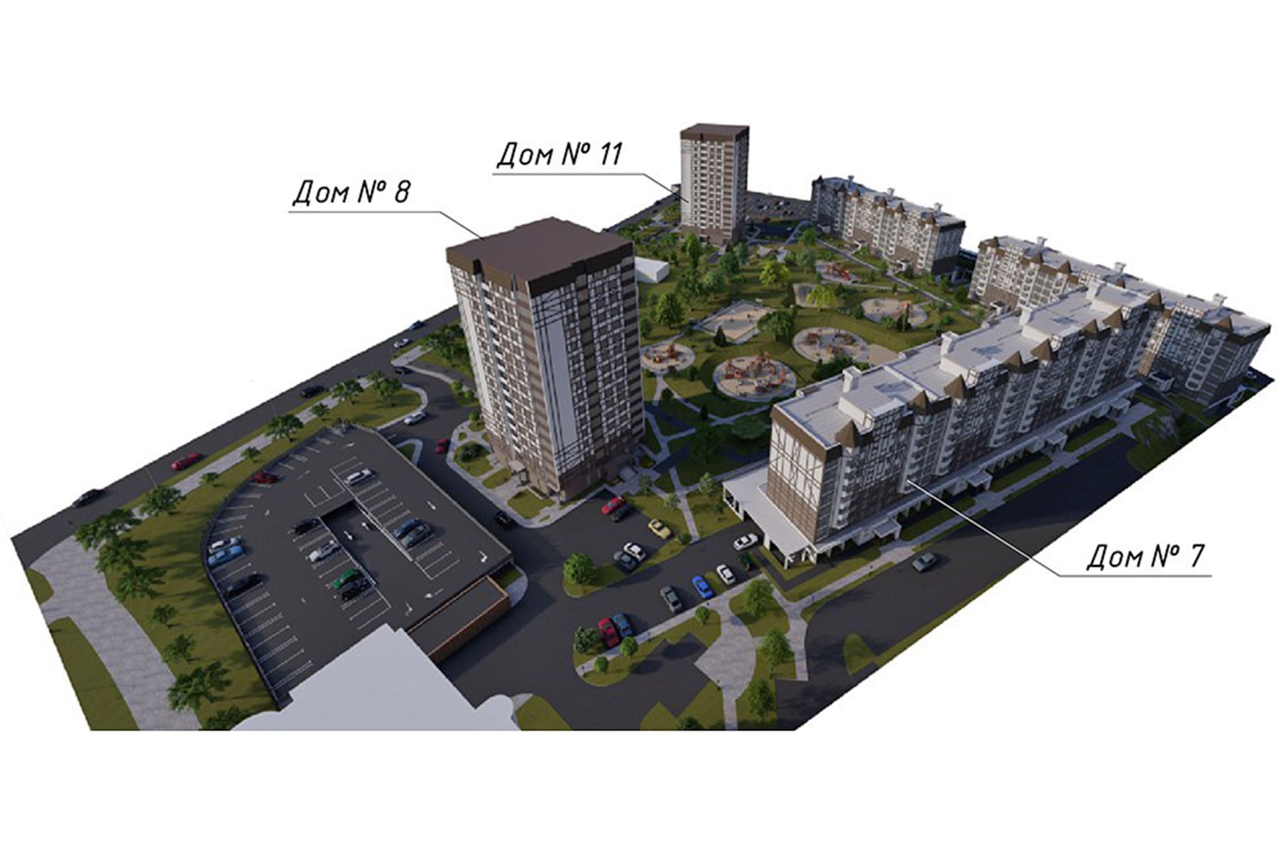 На макете нового квартала также видны детская площадка, места для отдыха и занятий спортом.
