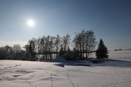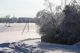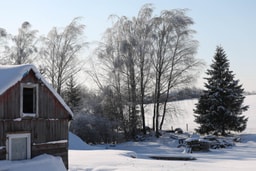Сегодня на участке Сенько внешне все спокойно: дом, хозяйственные постройки, большое поле под снегом. Если не знать предыстории, картина почти идиллическая.