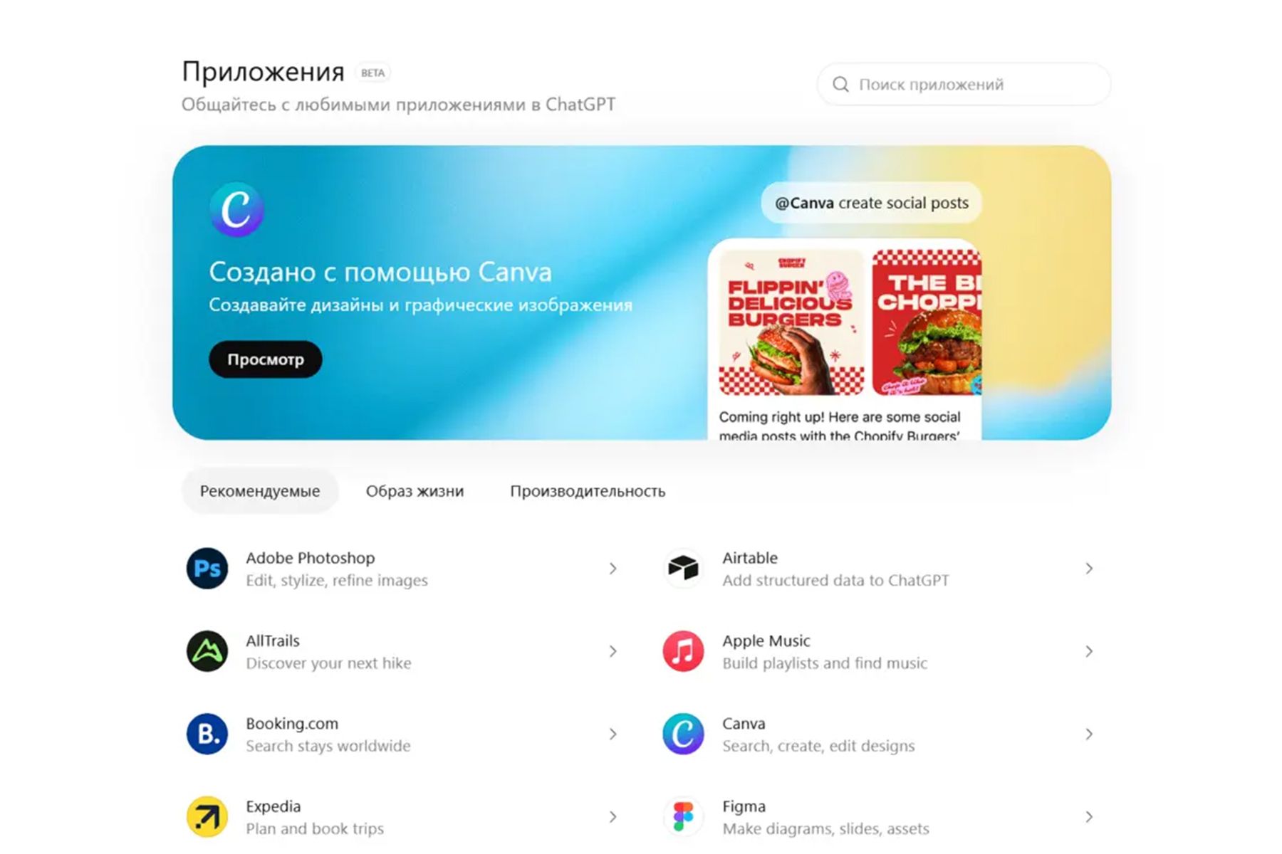 OpenAI представила новый каталог приложений ChatGPT, названный App Directory. В этом магазине собраны все продукты, совместимые с ChatGPT, включая такие популярные сервисы, как Adobe Photoshop, Airtable, Canva, Notion, Slack, Spotify и Zoom, сообщает Engadget.