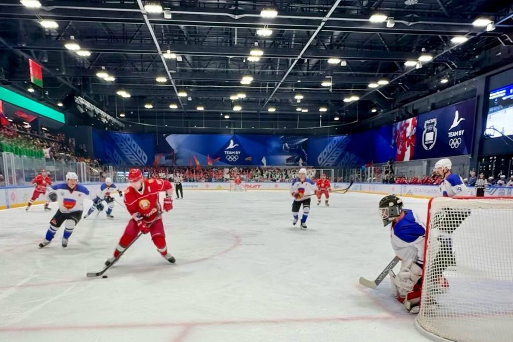 В Минске на льду «Олимпик-Арены» прошла встреча между сборной Брестской области и командой главы государства.