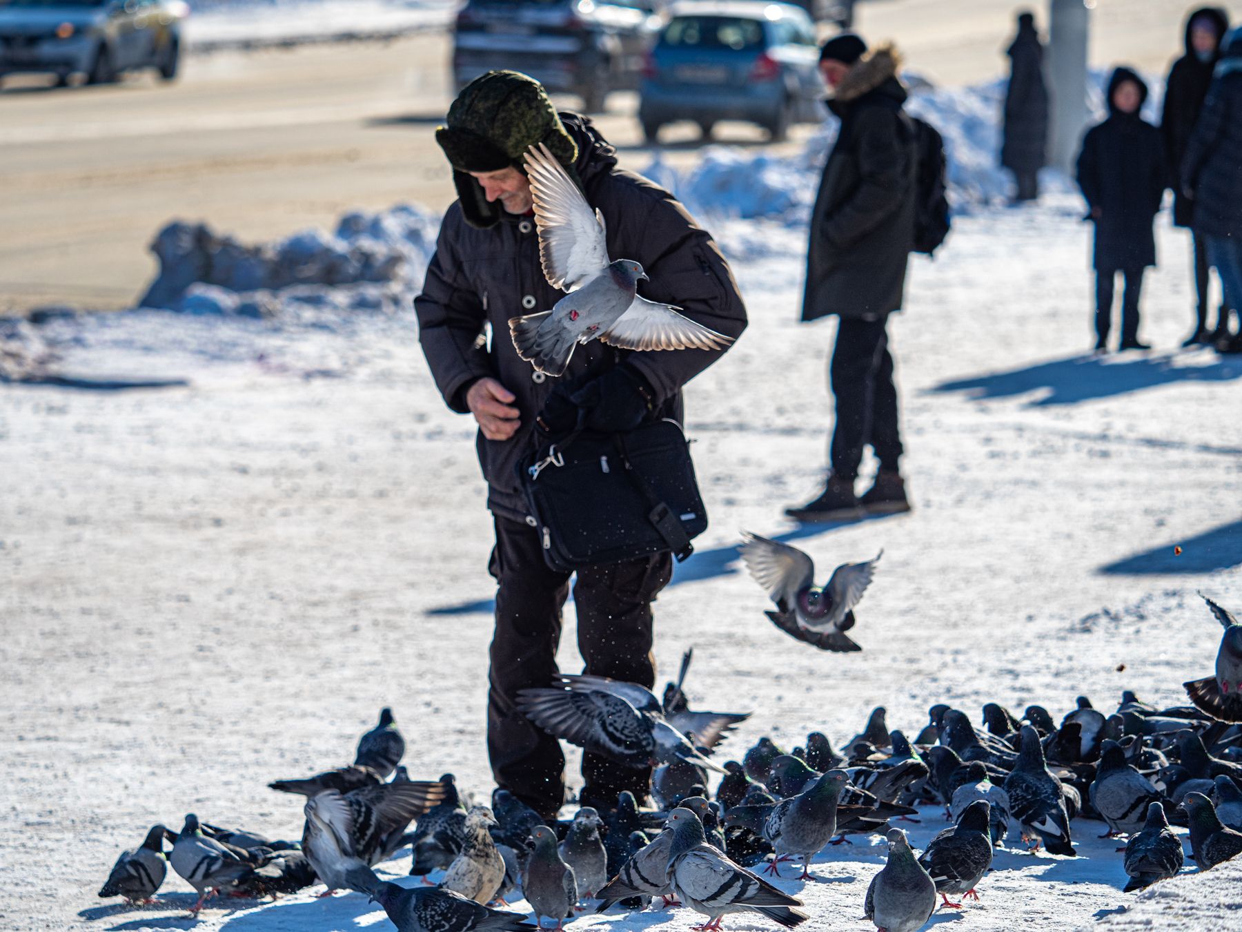 Обычно оживленные площадь Победы и парк Победителей были непривычно тихими. Лишь изредка можно было заметить спешащих по делам горожан, старательно прячущих от морозов носы и руки. Но даже в мороз сохраняется добрая городская традиция: около ратуши по-прежнему подкармливали голубей.