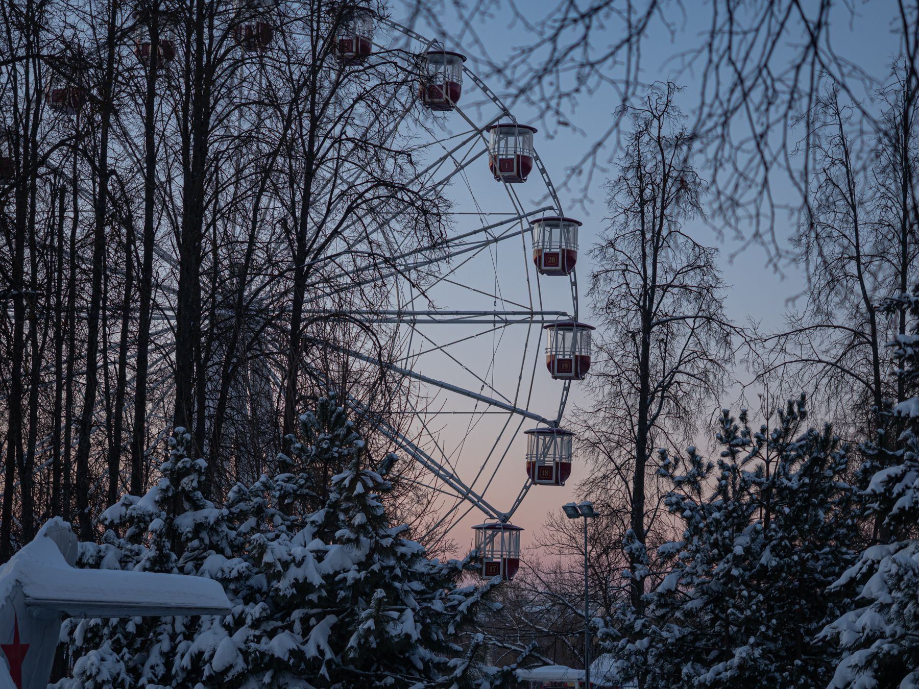Укутанный снегом город ждет, когда холода отступят и вернется привычный шум и оживление.