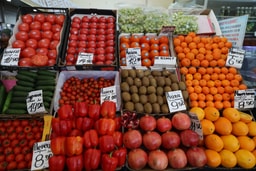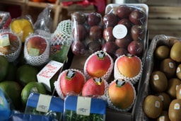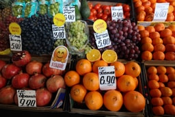Так, цены на ананасы варьируются от Br9,90 до Br22,90, апельсины – от Br8,90 до Br14,90, мандарины – от Br7,90 до Br18,90, бананы – от Br5,90 до Br9,90, разные сорта яблок – от Br4,90 до Br8,90. Везде указана стоимость из расчета за килограмм.