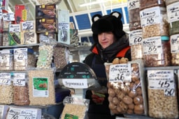 На зиму большая часть людей с сезонного рынка переезжает в крытое помещение. У холодных прилавков остаются лишь единицы.
