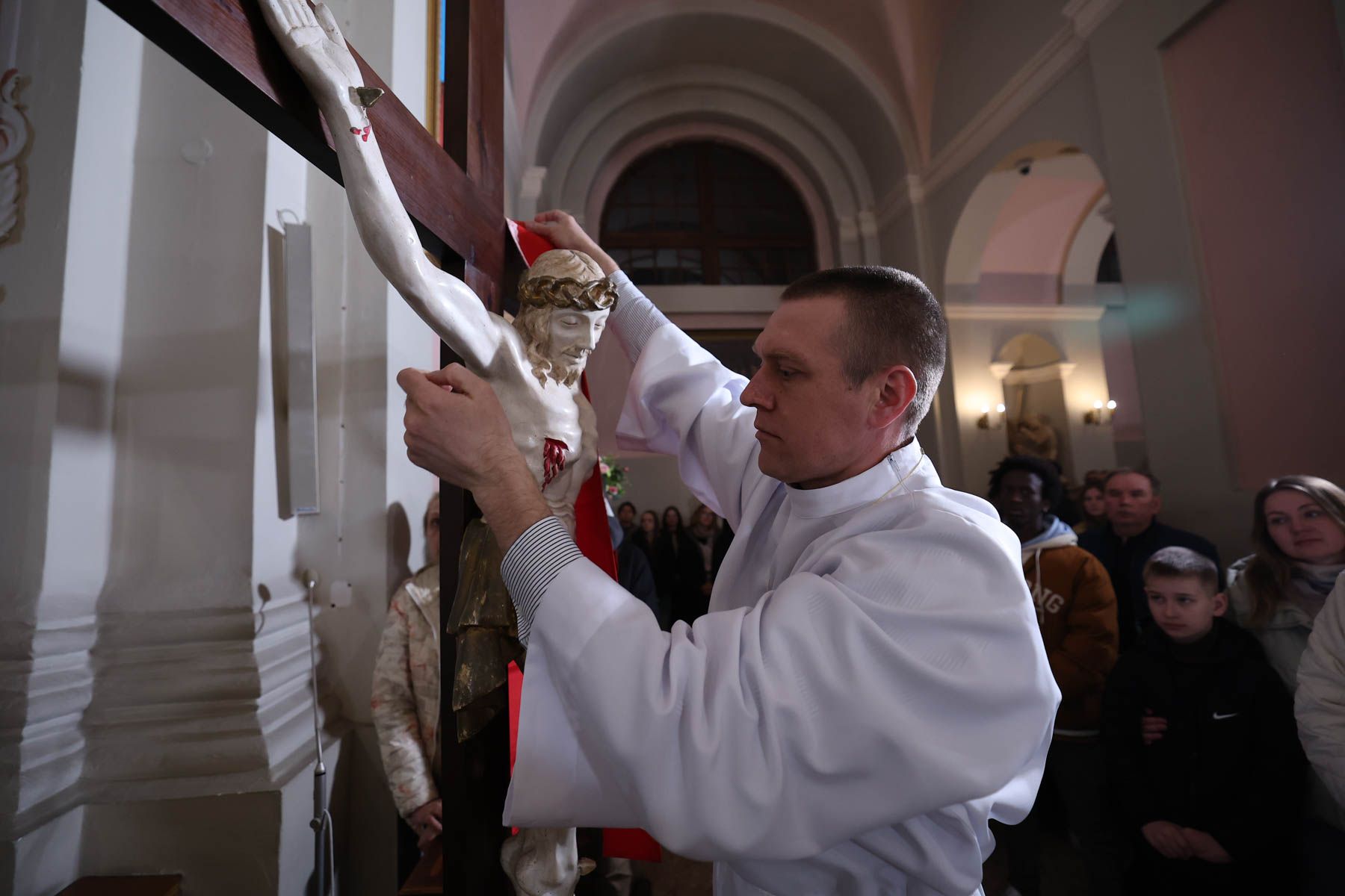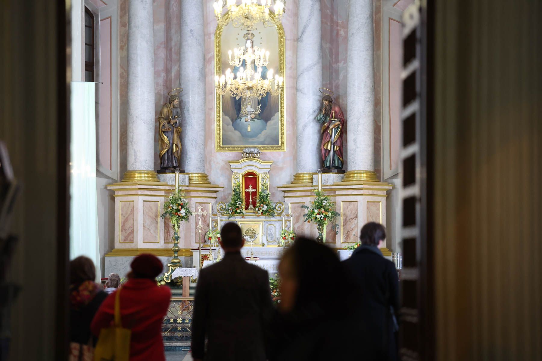 Католики Беларуси в этом году отмечают Пасху 5 апреля. Фотокорреспондент Times.by запечатлел, какая атмосфера царила в Архикафедральном костеле Пресвятой Девы Марии в Минске накануне главного праздника – Воскресения Христова.