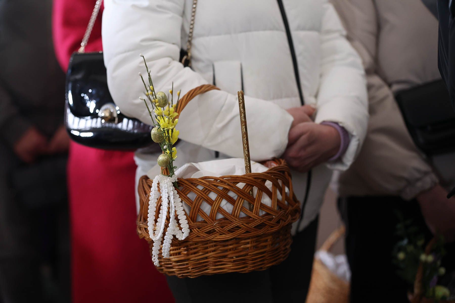 Празднично украшенные корзинки с крашеными яйцами и пасхальными куличами начали освящать в Архикафедральном костеле днем в субботу. В минский архикафедральный собор пришли сотни верующих.
