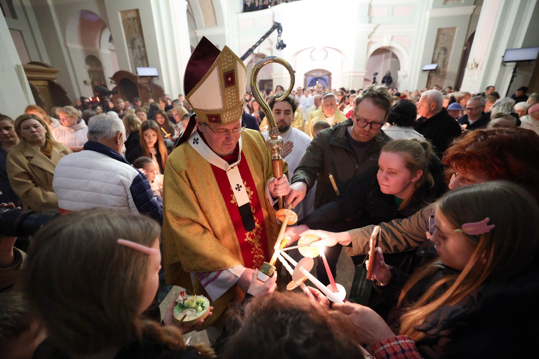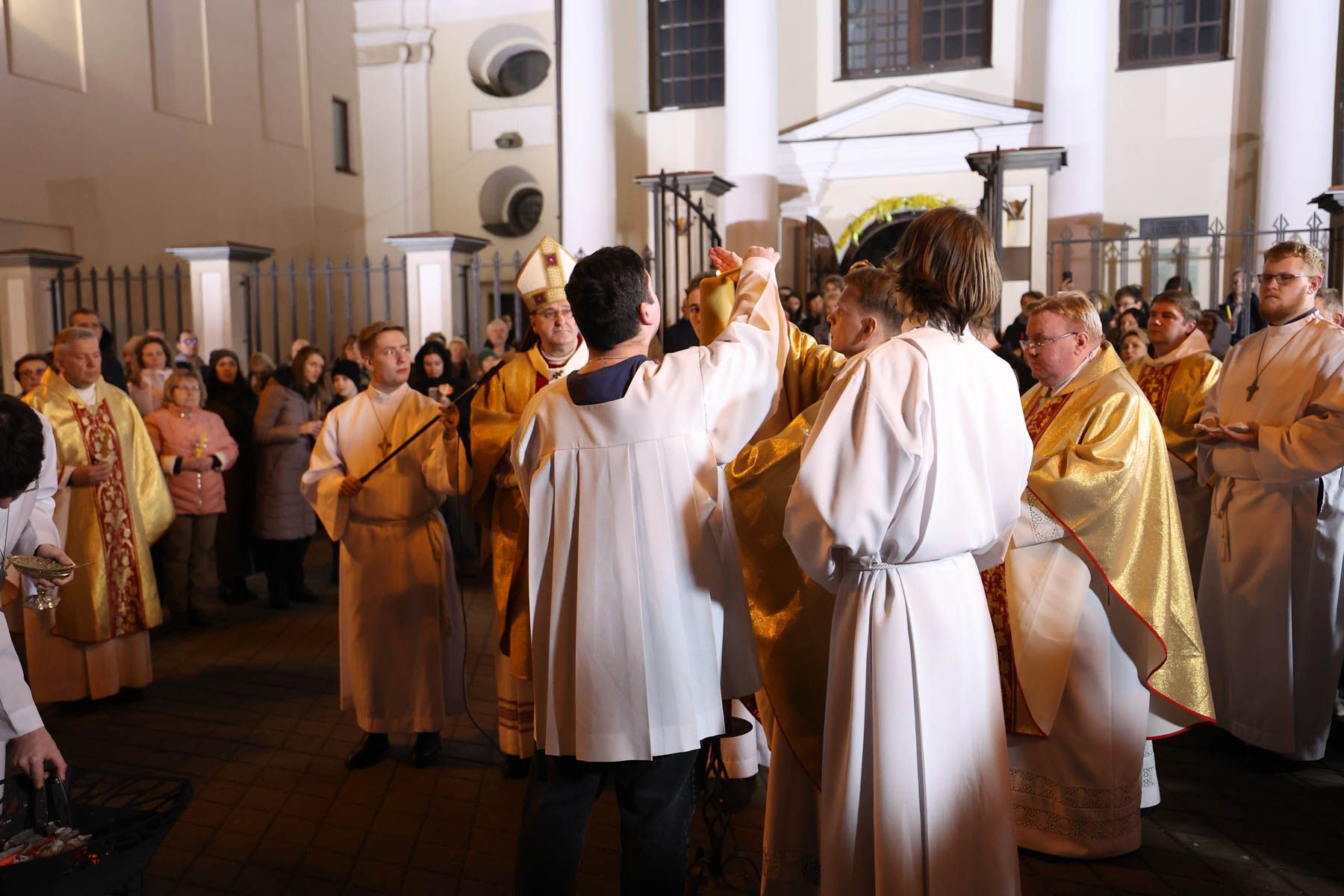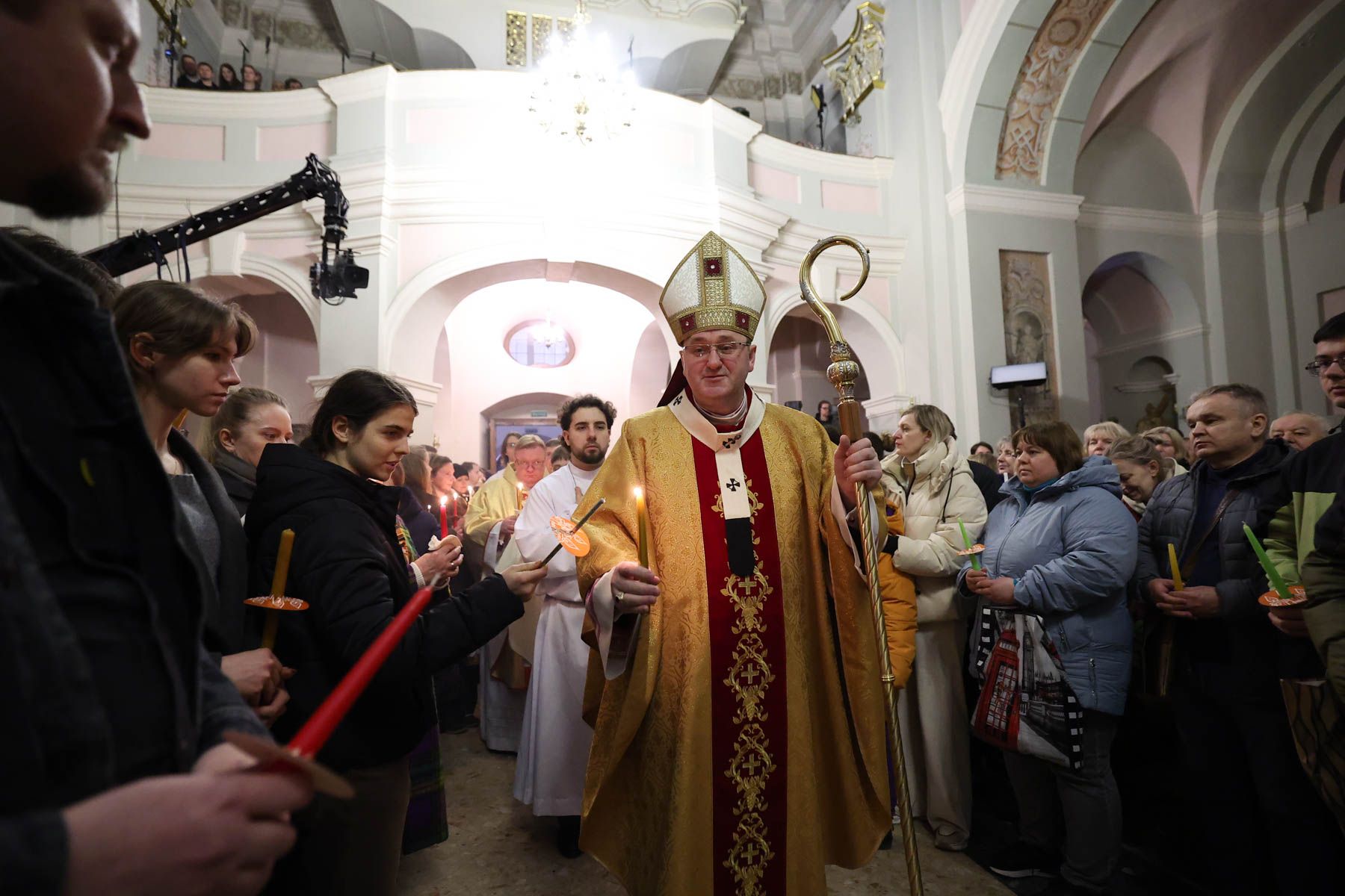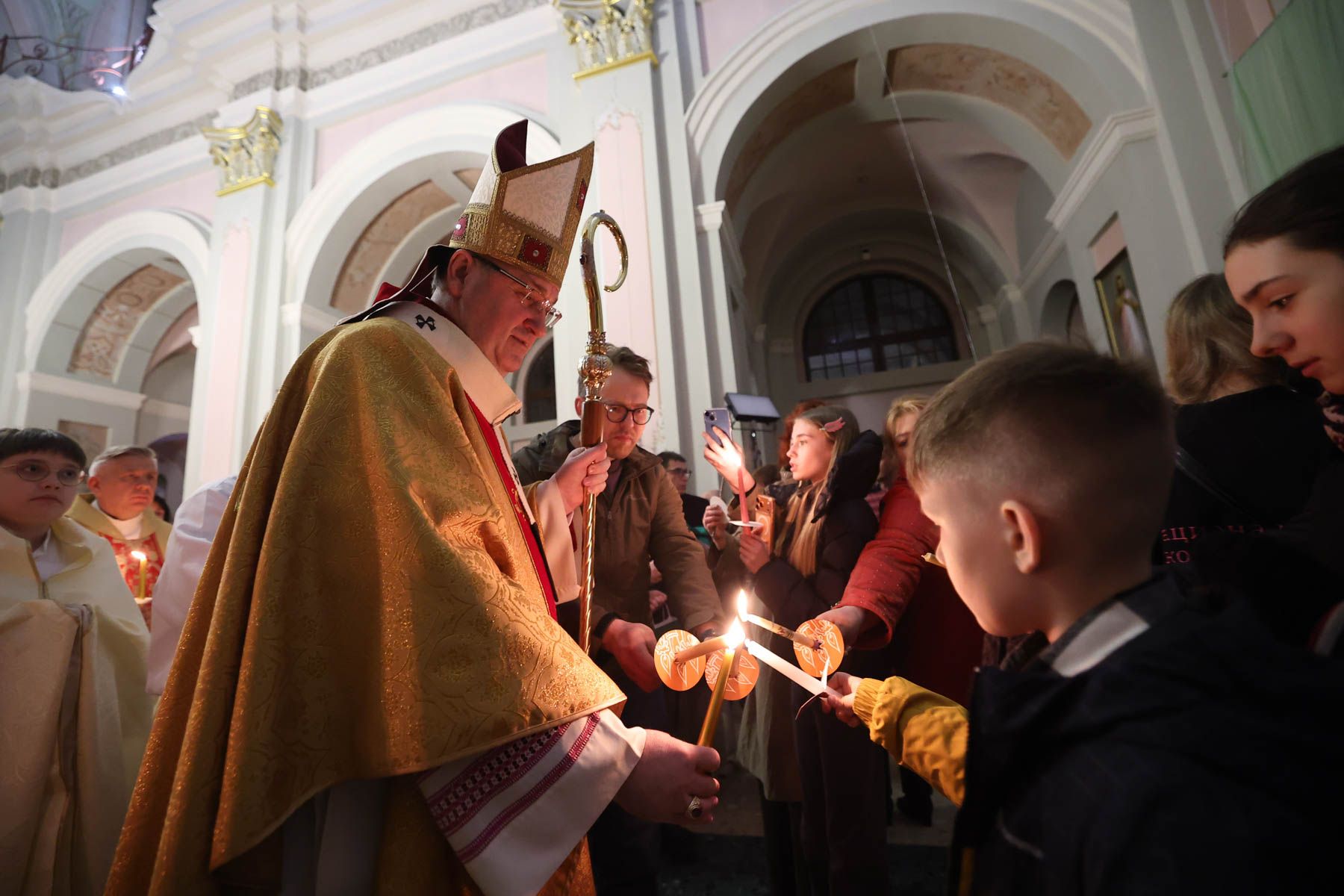 Вечером в субботу началось главное богослужение года – Пасхальная Вигилия, которое возглавил архиепископ Юзеф Станевский, митрополит Минско-Могилевский.
