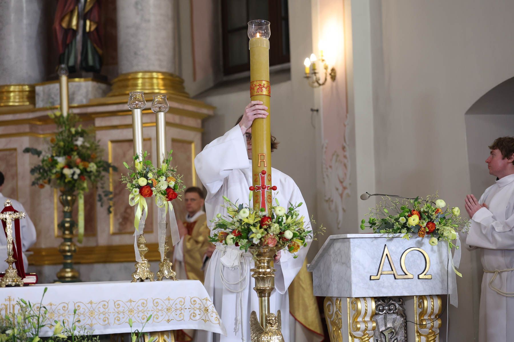 Вечером в Святую субботу в костелах зажигают благодатный огонь. Церемония зажжения огня – это «Литургия света» (Lucernarium), начинающая Навечерие Пасхи.