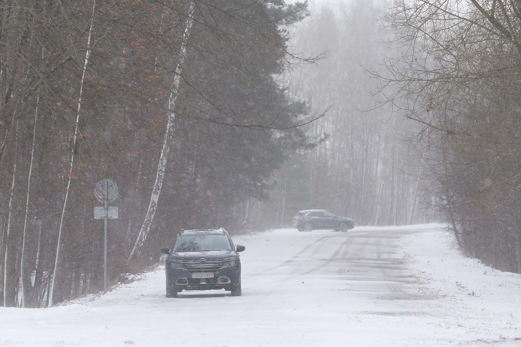 Машины на заснеженной дороге. © Павел Орловский, Times.by