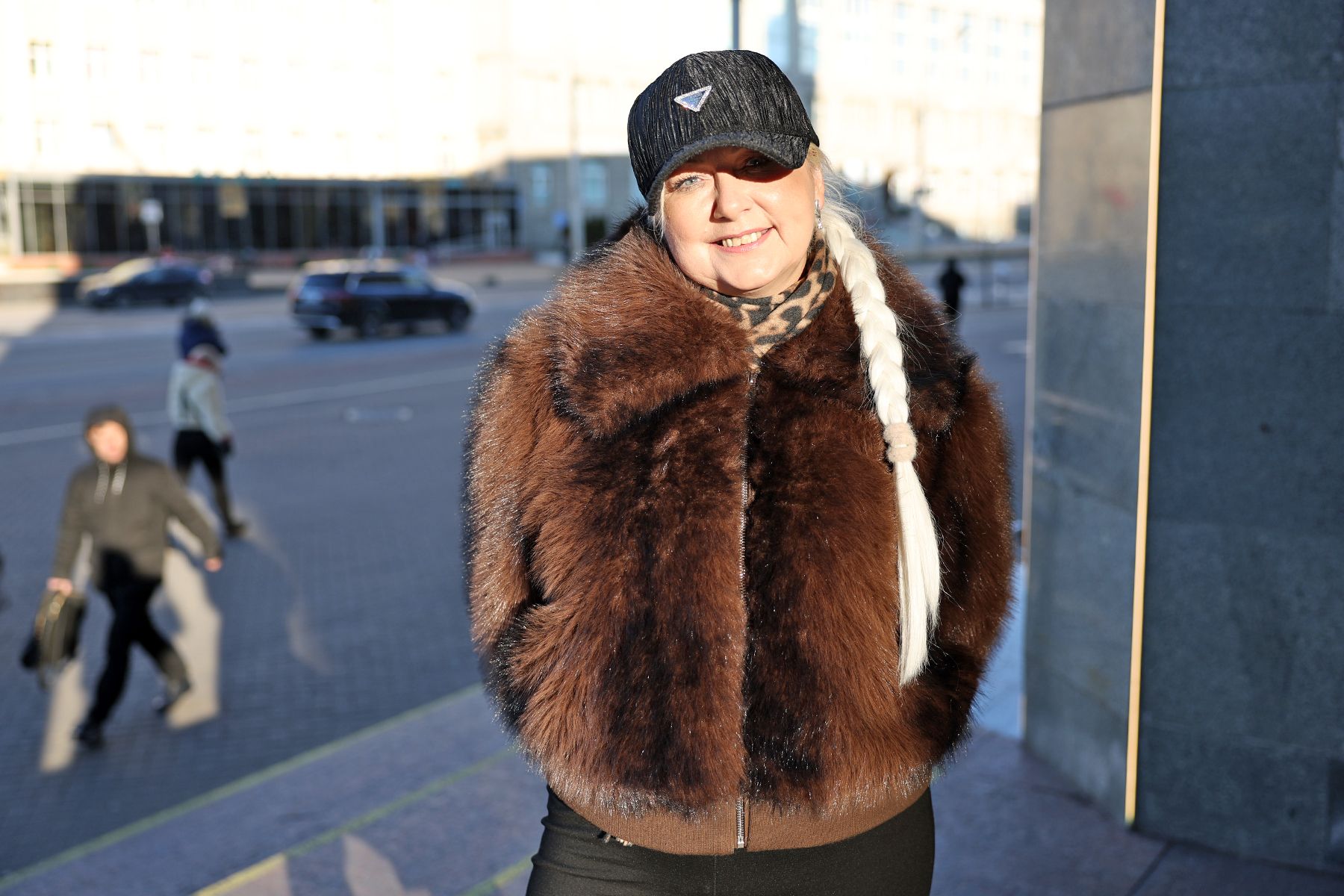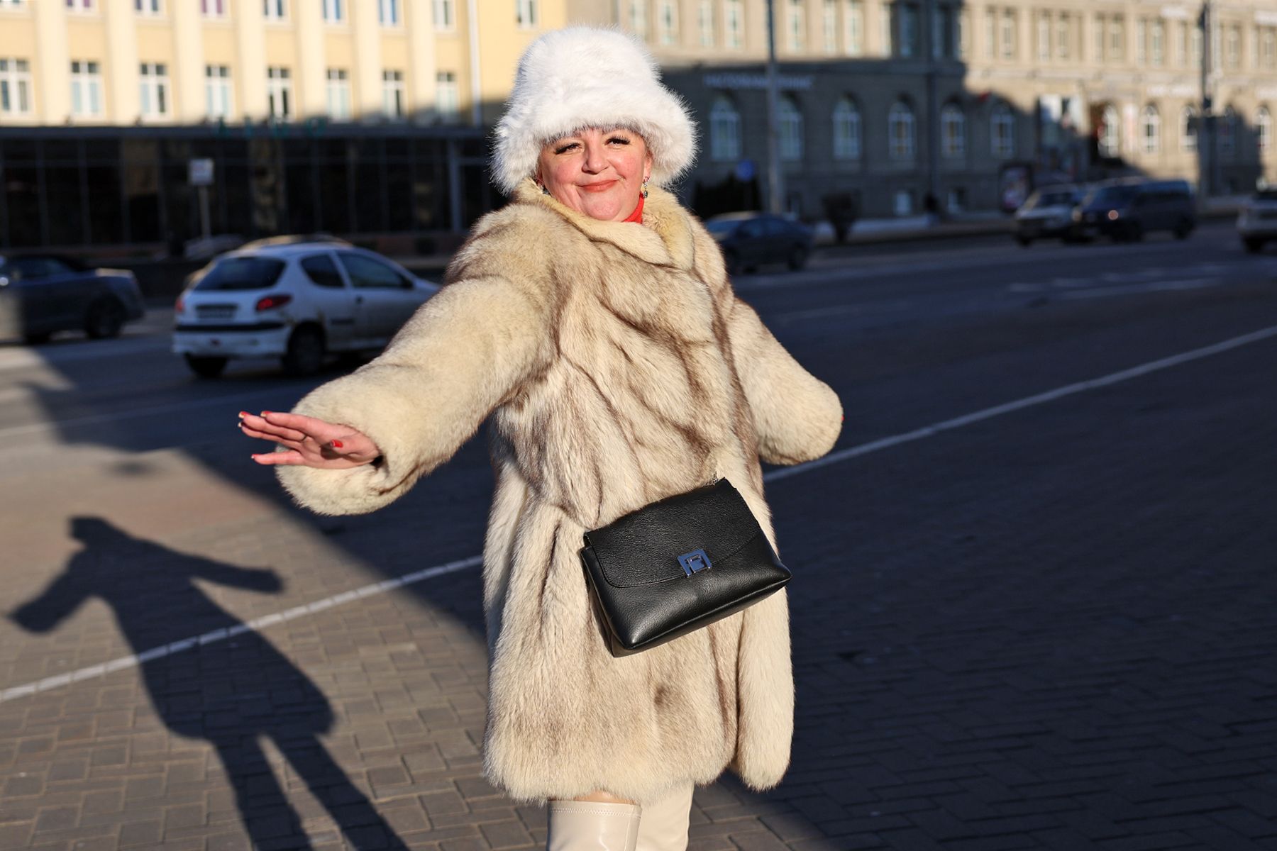 Первой на пути оказалась Алена в песцовой шубе и меховой панаме – мимо такого не пройдешь. Минчанка долго искала этот головной убор на маркетплейсах и буквально вчера забрала его из пункта выдачи.