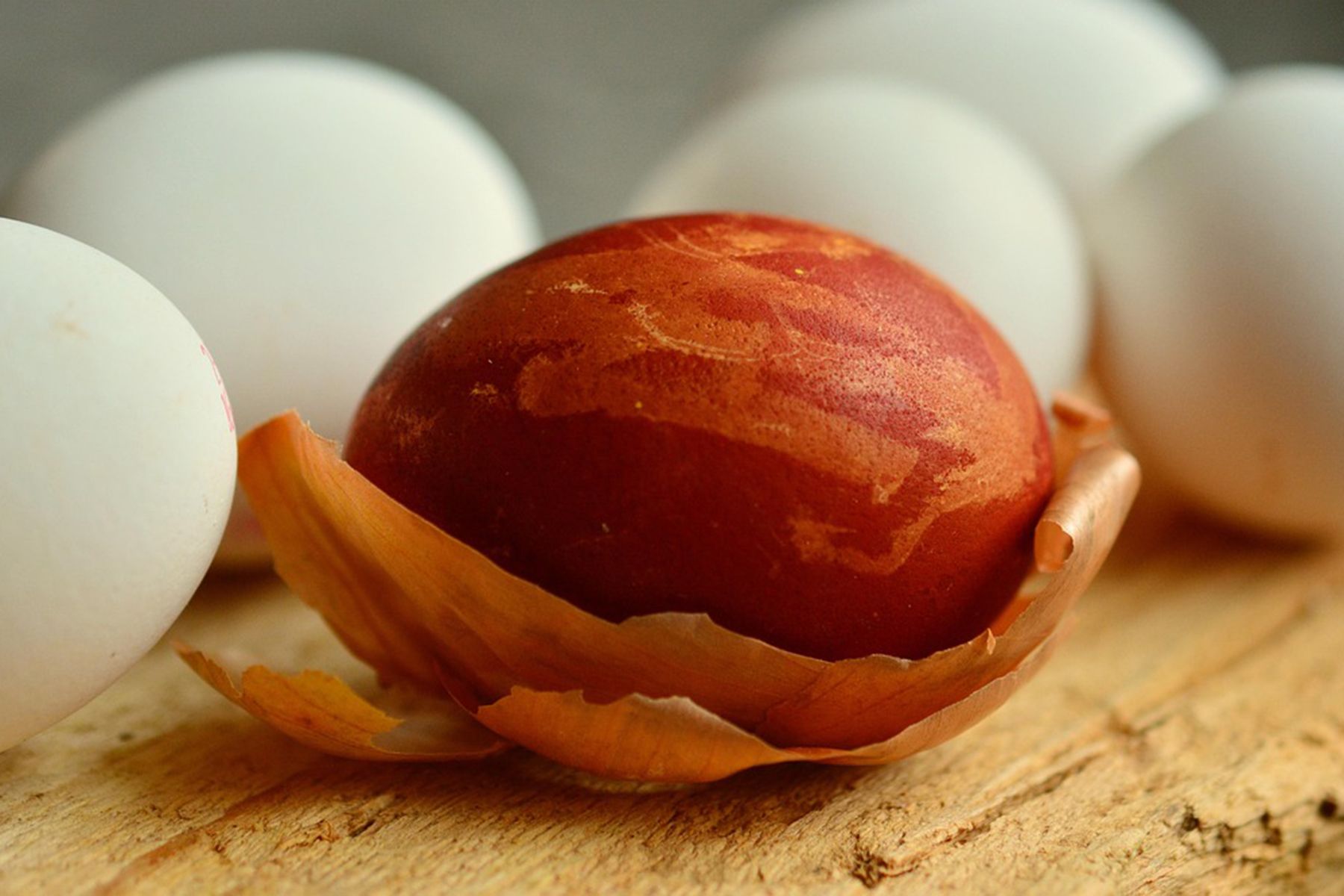 Как окрашивать: шелуху хорошо промывают от песка и загрязнений, заливают холодной водой и варят 30–40 мин. Затем отвар процеживают (или оставляют с шелухой для фактурного рисунка), кладут в него подготовленные сырые яйца и варят 10–12 мин. после закипания. Готовые яйца вынимают, остужают и натирают растительным маслом для блеска.