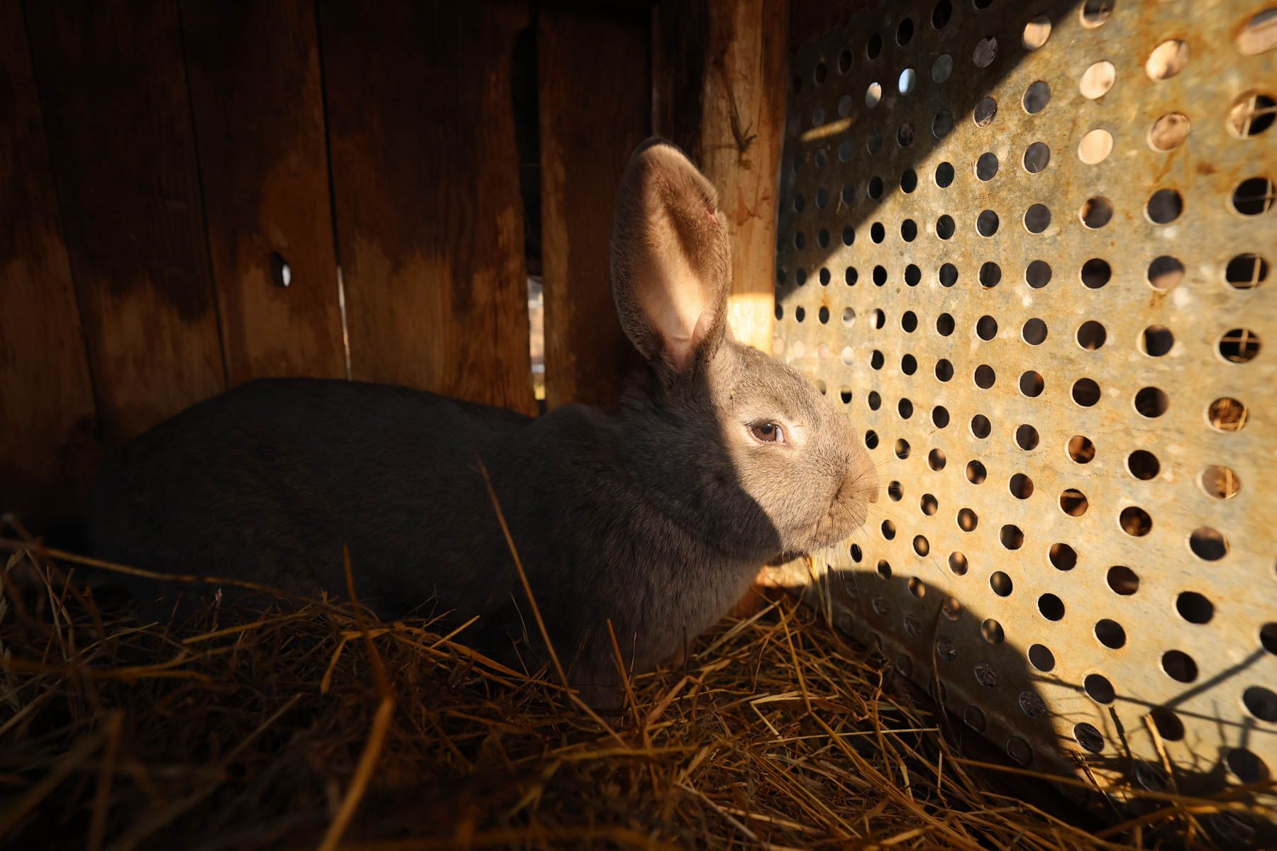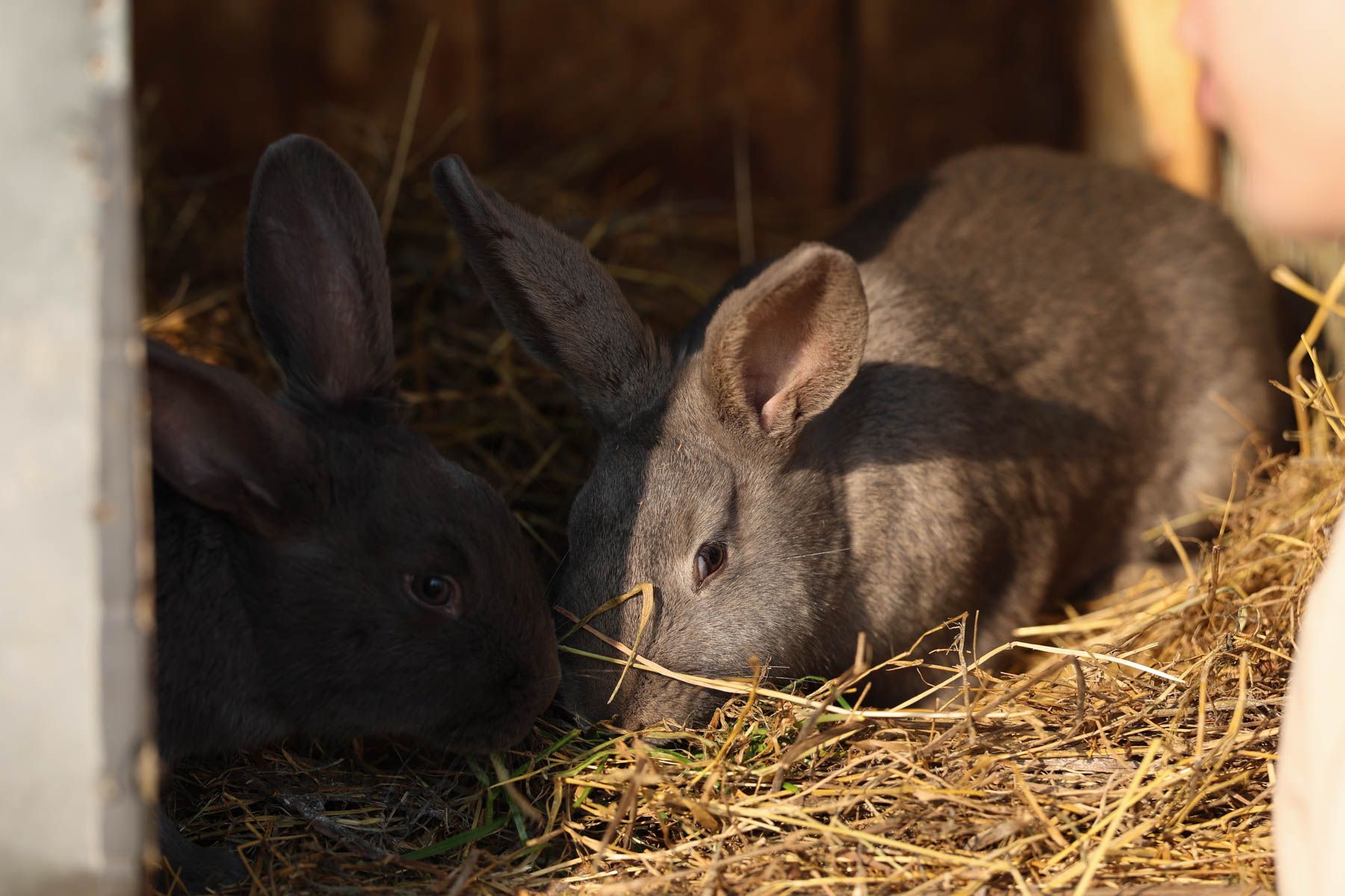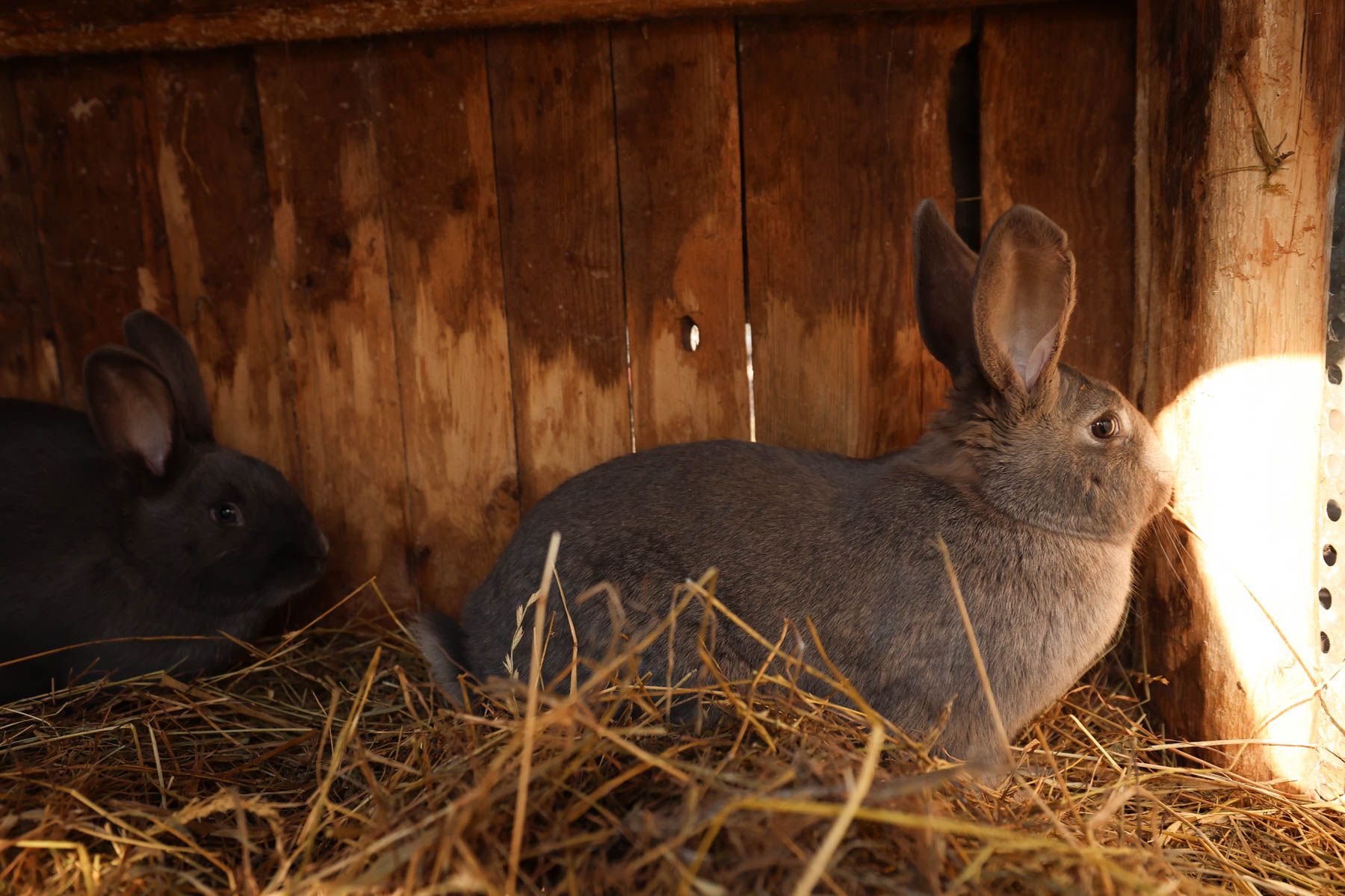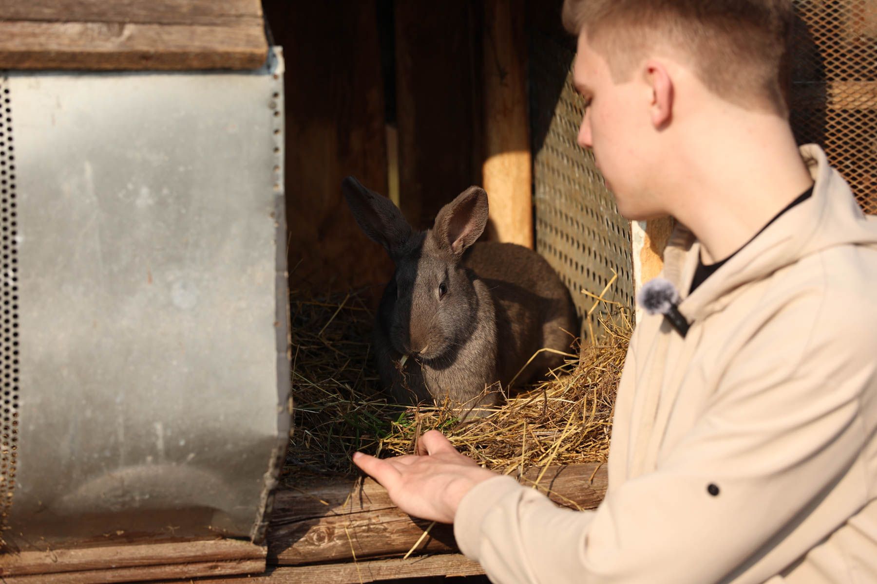 Женя показал нам загоны со свиньями. Заглянули и к кроликам. Семья давно ищет чистопородного венского голубого кролика – нашли только крольчиху.