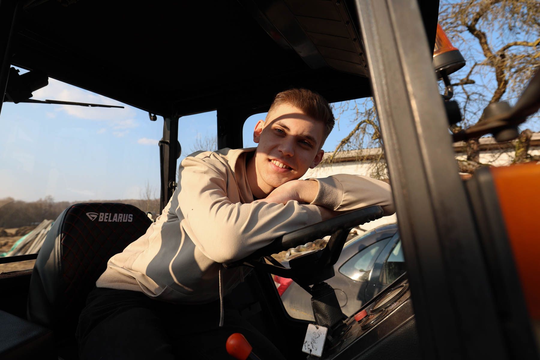 Посидели мы и в знакомом подписчикам тракторе Димоне. Назвали его в честь друга семьи. Трактор выбирали тщательно, главный критерий – размер кабины. «Мой рост – 198 см, папин – 205 см, и в китайский мы бы не влезли», – смеется Женя. Выбор пал на трактор «Беларус» – он отлично справляется с задачами на хуторе.