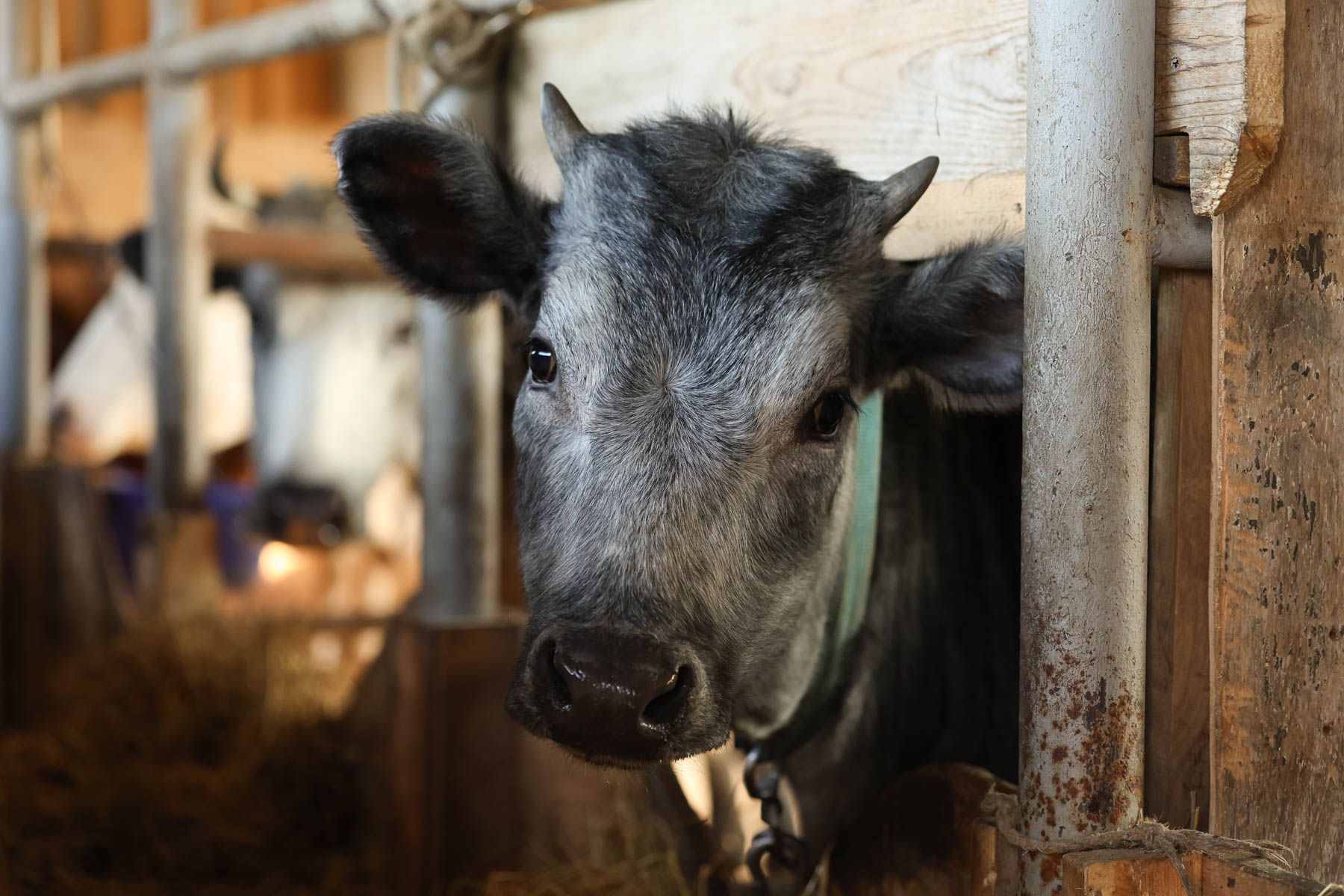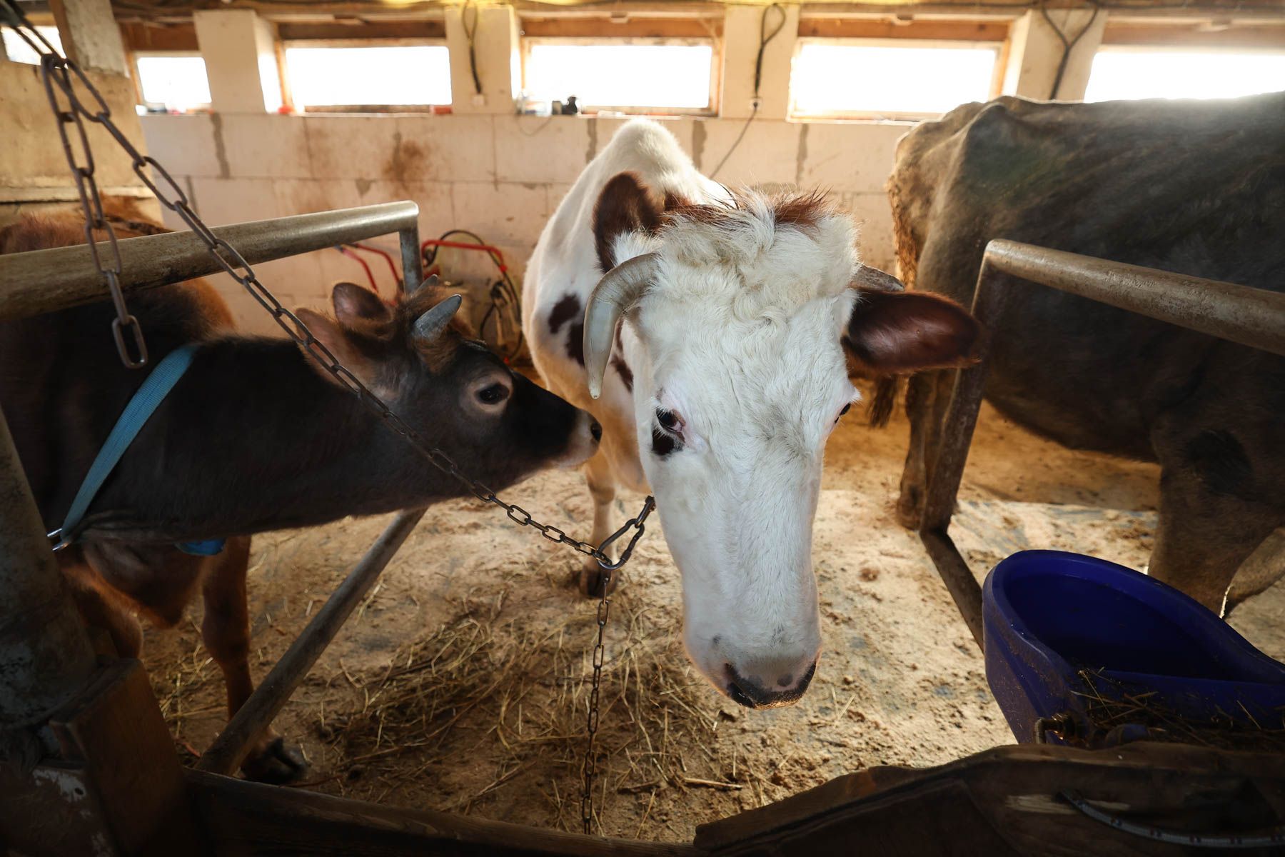 «Наши коровы нас знают и общаются с нами», – отмечает Женя. Характер у всех разный: голубая корова Илви, например, любит обниматься. А рыжая Белка этого делать ни за что не будет.