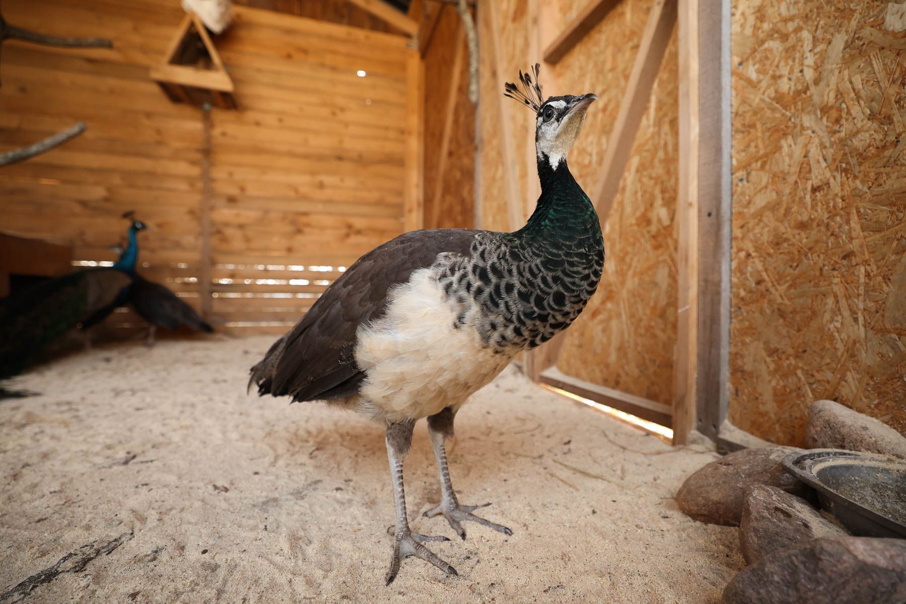 Невероятной красоты фазаны, павлины и даже курицы на хуторе – породистые. Женя проводит нам экскурсию и рассказывает, по какому принципу они размещены в птичнике. Например, в вольере с павлинами этажом выше живут белые голуби – такое соседство дает возможность птицам ощущать себя в безопасности и не мешать друг другу. Павлины с фазанами территорию не смогут поделить, поэтому для них семья построила разные вольеры.
