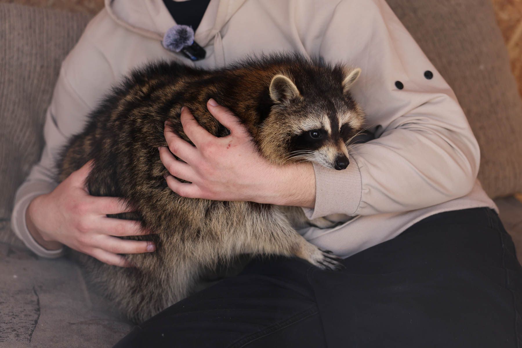 Несмотря на милый вид, это все-таки дикое животное с острыми зубами, отмечает Женя. И предупреждает: снимать Ноту нужно с особой аккуратностью – еноты любят все хватать, и поэтому микрофон или телефон могут быстро оказаться в лапках.