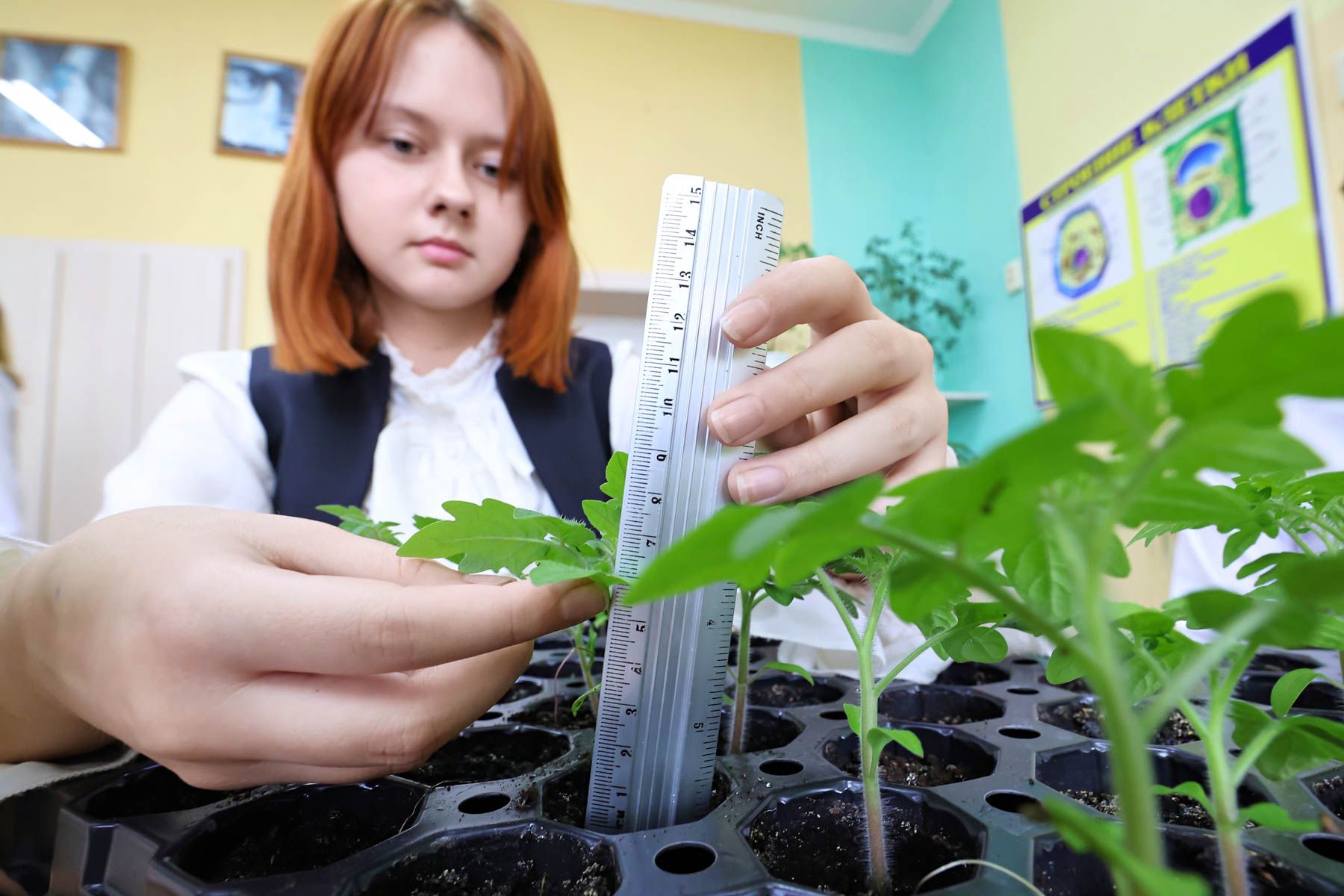 «Мы их измеряем ежедневно. Те, что не взошли в самом начале, уже не взойдут. Слабые семена попались. А сильные выжили», – со знанием дела констатирует 11-классник Владимир Нехведович.