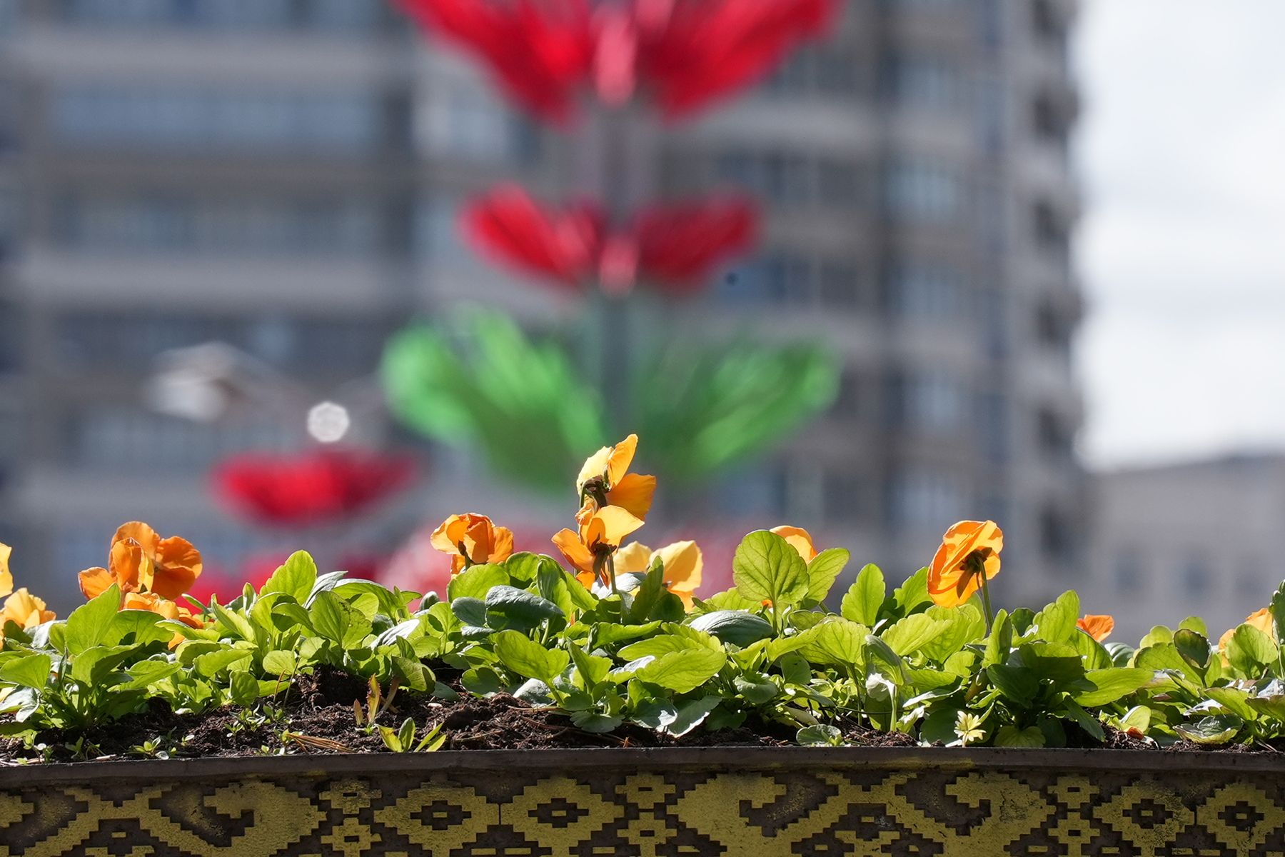 Тысячи ящиков с виолами украсили главные улицы столицы.