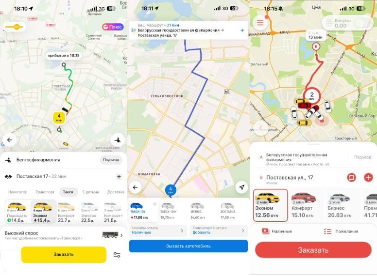 Как рассказали Times.by в пресс-службе «Яндекс Такси», на стоимость поездки влияет выбранный тариф, расстояние до места назначения, время в пути, а также количество свободных машин на линии.