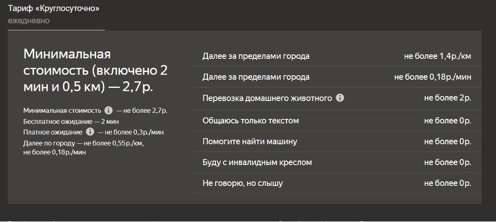 • стоимость поездки формируется только в рамках заявленных тарифов, которые не меняются уже более 5 лет; • для водителей действуют программы мотивации, стимулирующие выполнять все заказы; • проводятся информационные рассылки водителям с разъяснениями о необходимости выезда на линию и выполнении всех заказов, особенно в периоды повышенного спроса.